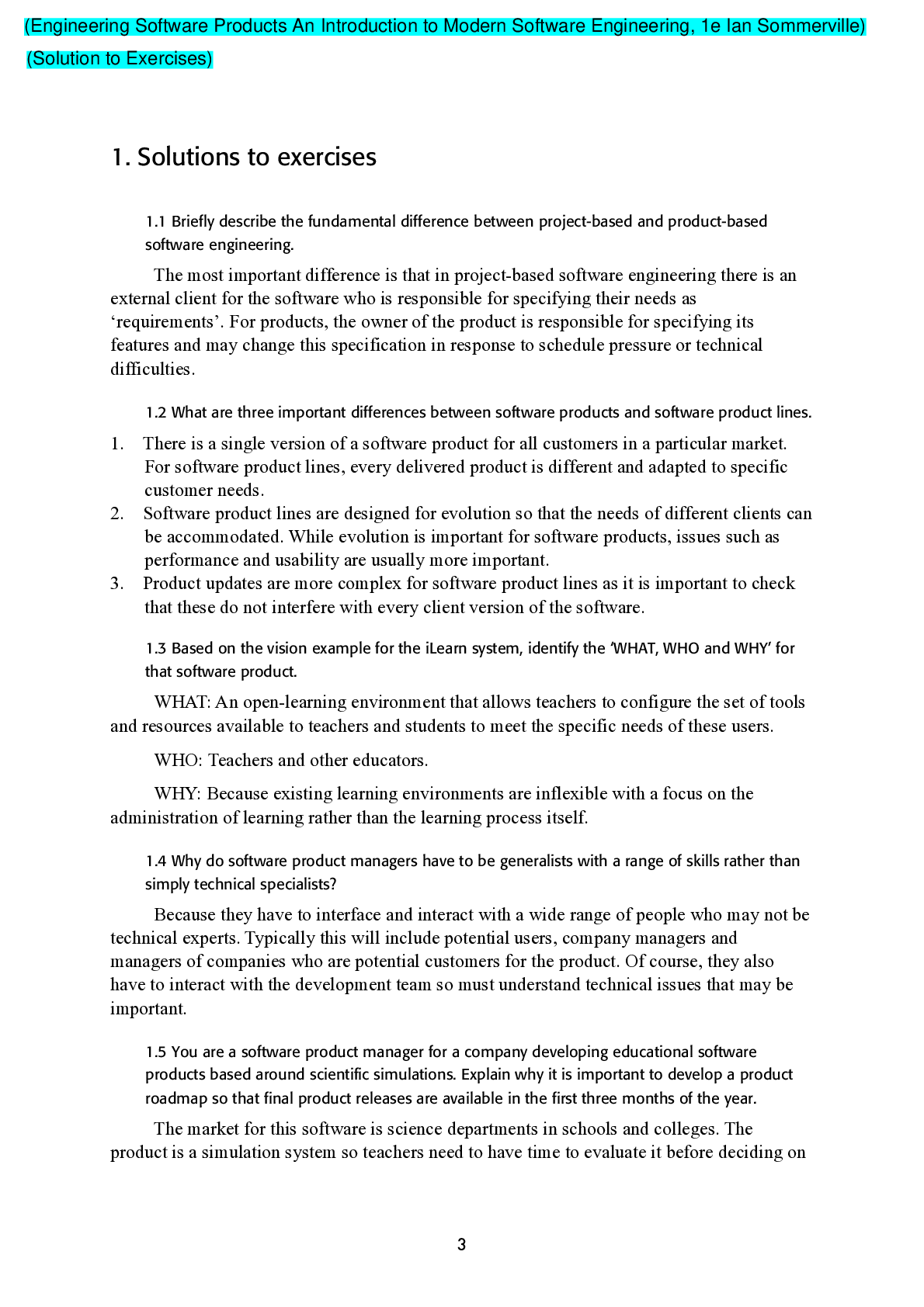 Engineering > SOLUTIONS MANUAL > Engineering Software Products An Introduction to Modern Software Engineering, 1e Ian Sommerville (Solution of Execrcises) (All)