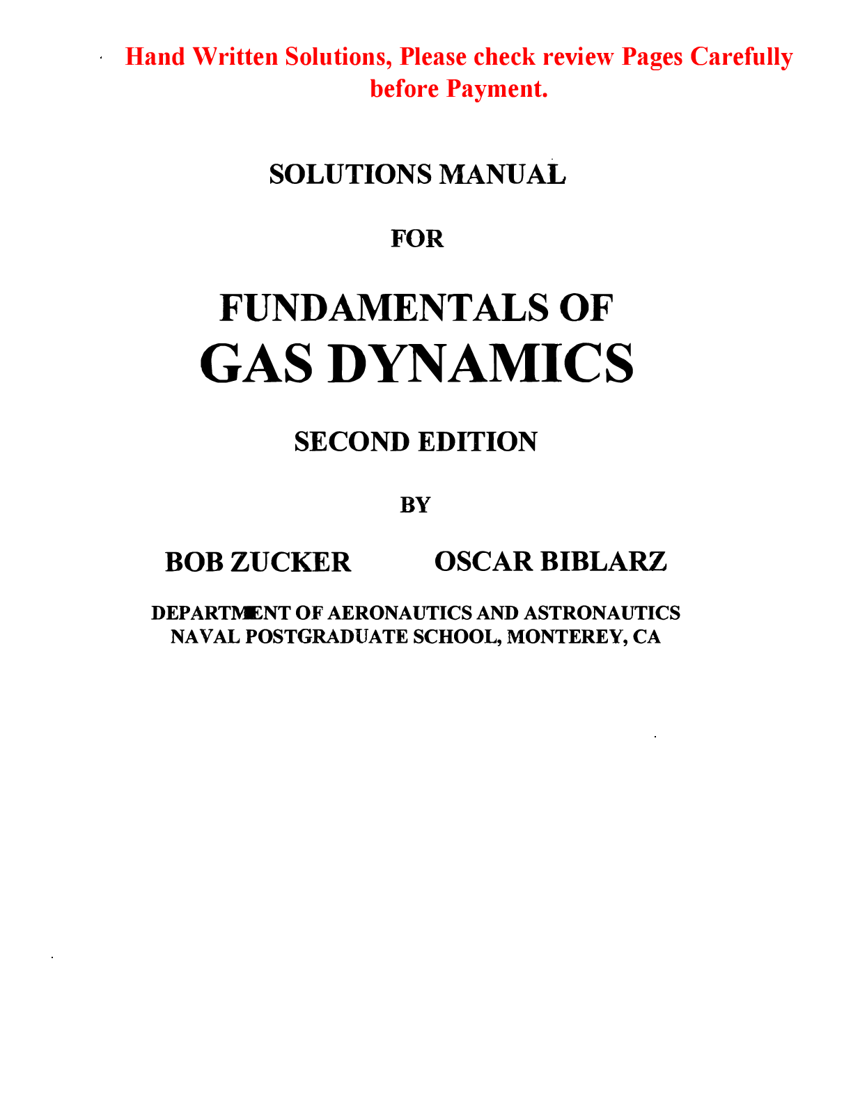 Engineering > SOLUTIONS MANUAL > Fundamentals of Gas Dynamics 2e Robert Zucker, Oscar Biblarz (Solution Manual) (All)