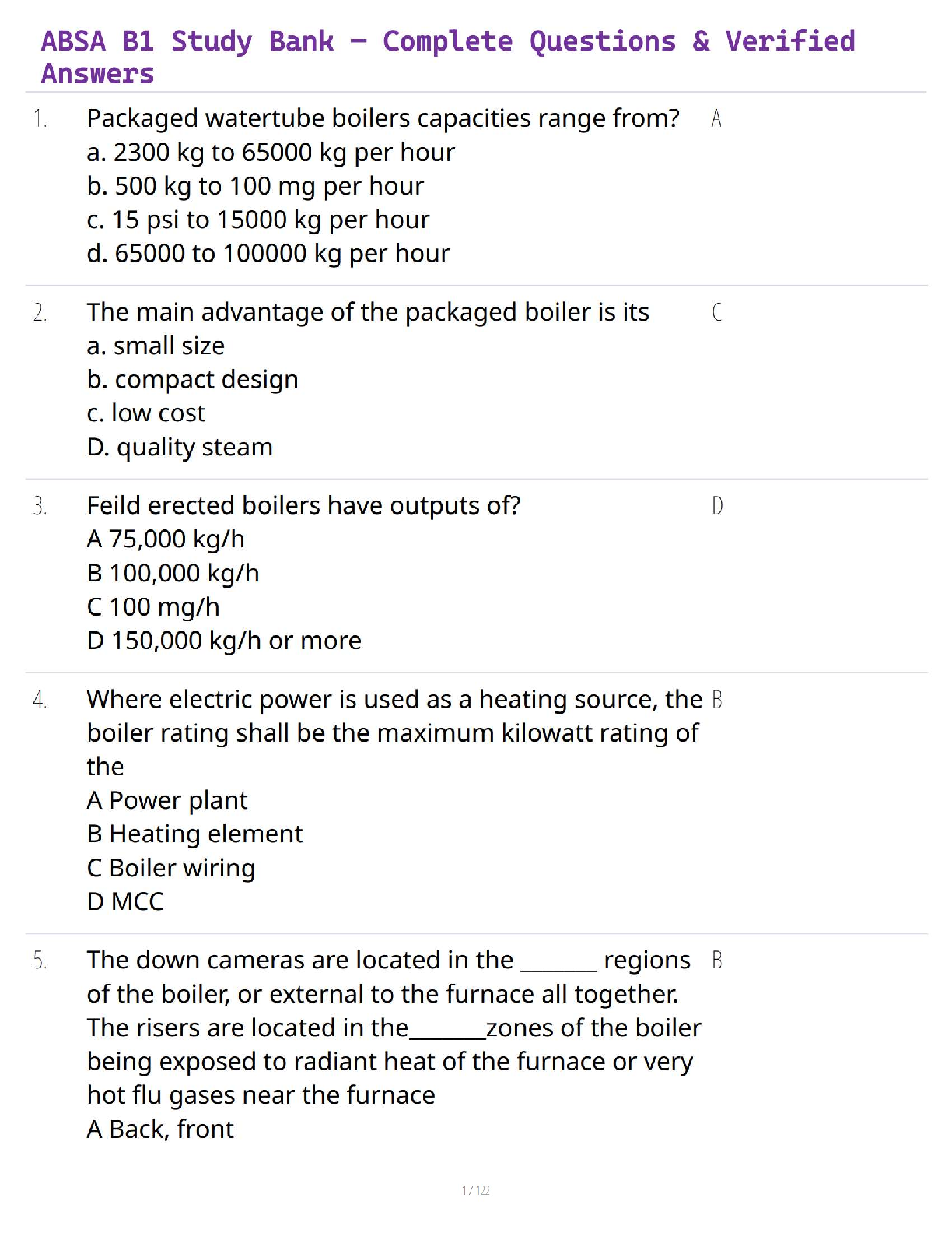 Engineering > STUDY GUIDE > ABSA B1 Study Bank – Complete Questions & Verified Answers (All)