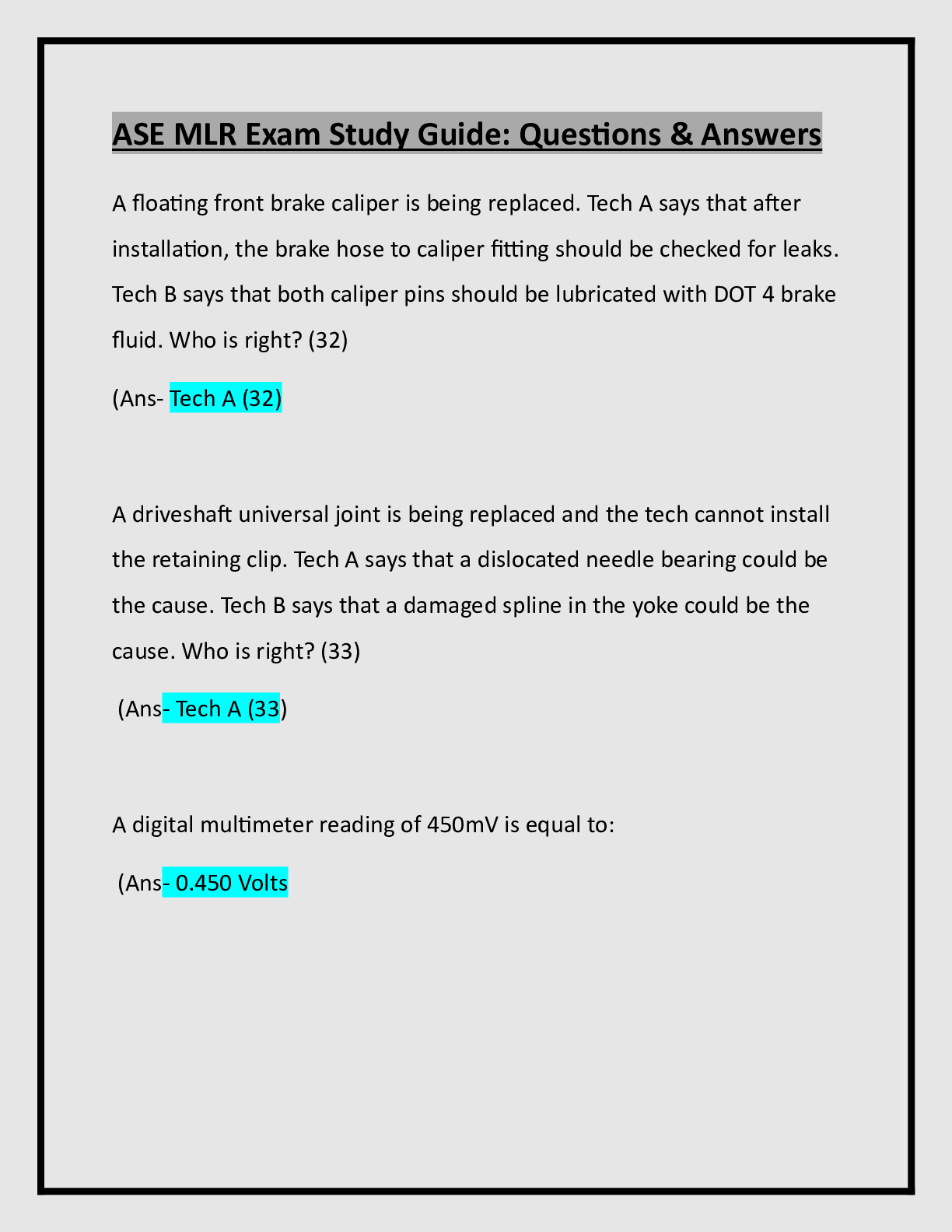 Engineering > EXAM > ASE MLR Exam:Study Guide: Questions & Answers: Updated (All)
