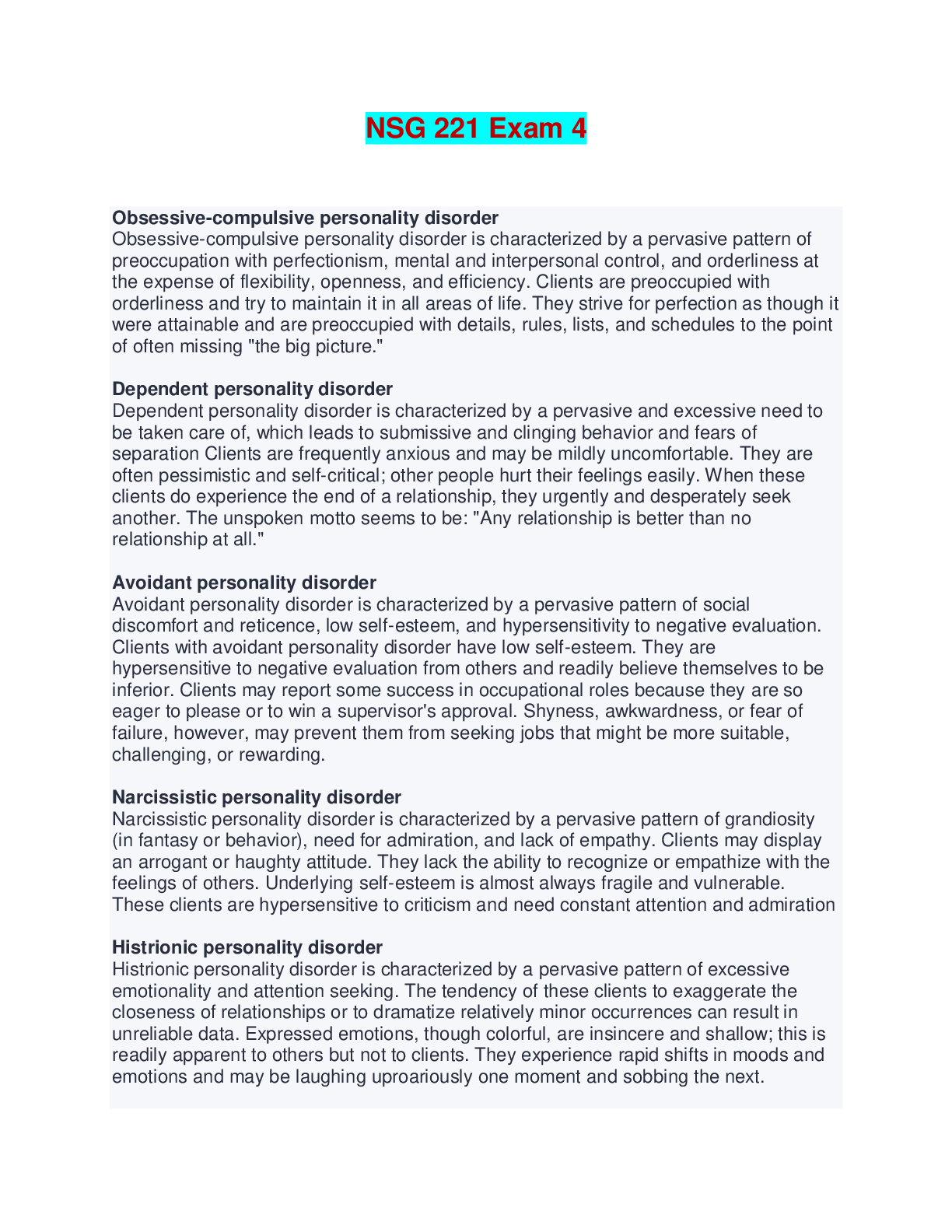 Medicine > EXAM > NSG 221 Exam 4 - Questions and Answers (All)