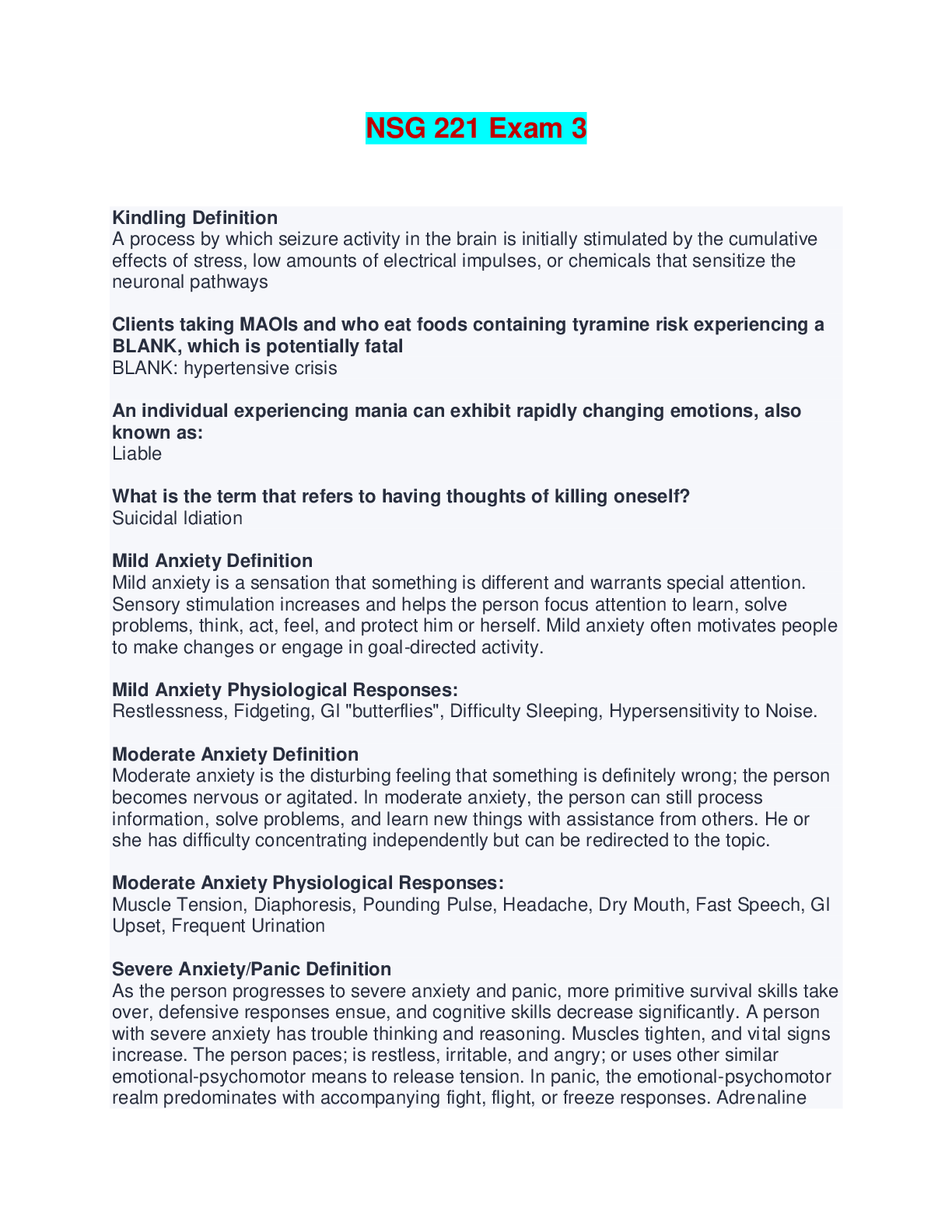 Medicine > EXAM > NSG 221 Exam 3 - Questions and Answers (All)