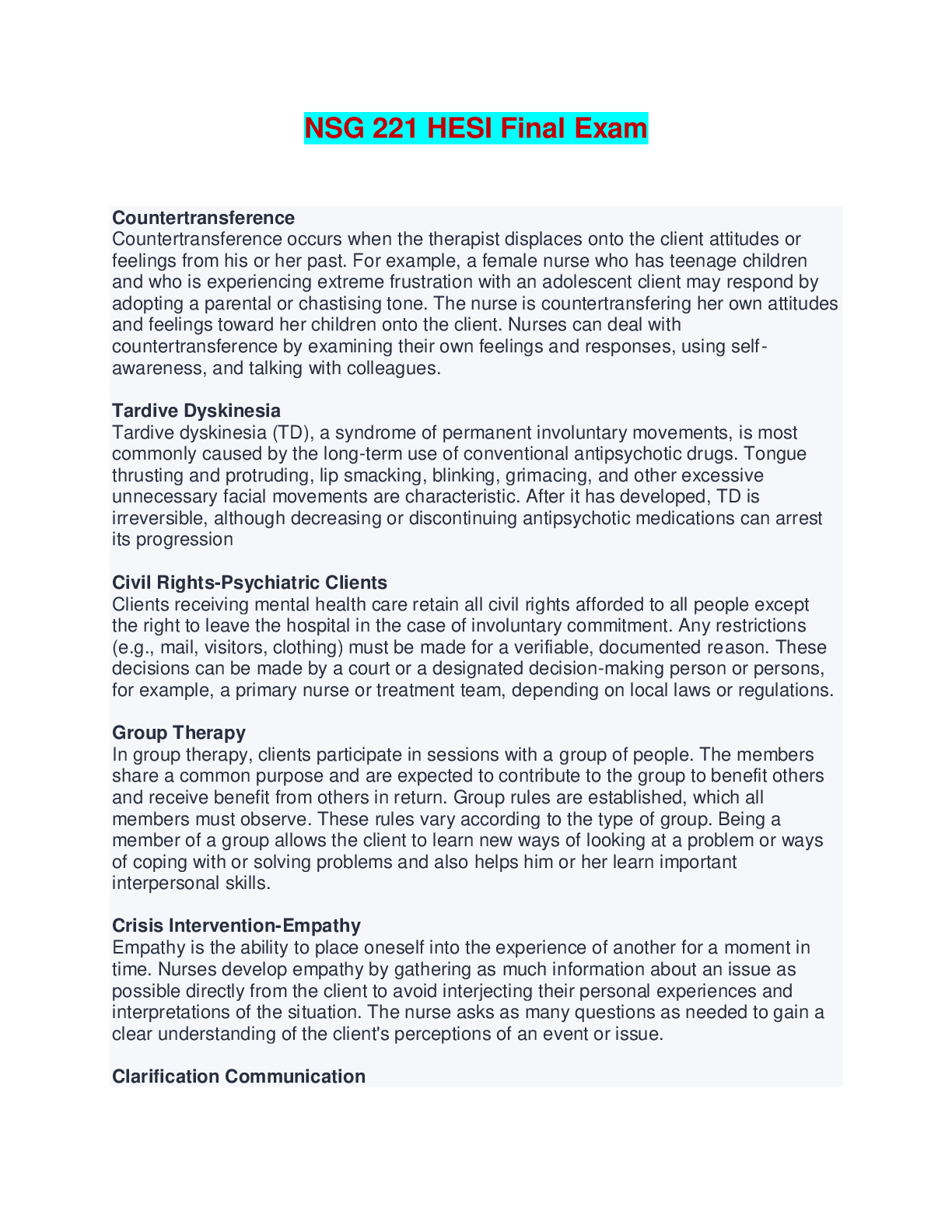 Medicine > EXAM > NSG 221 HESI Final Exam - Questions and Answers (All)