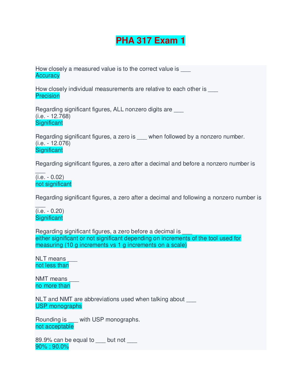 Medicine > EXAM > PHA 317 Exam 1 | Questions and Answers (Complete Solutions) (All)