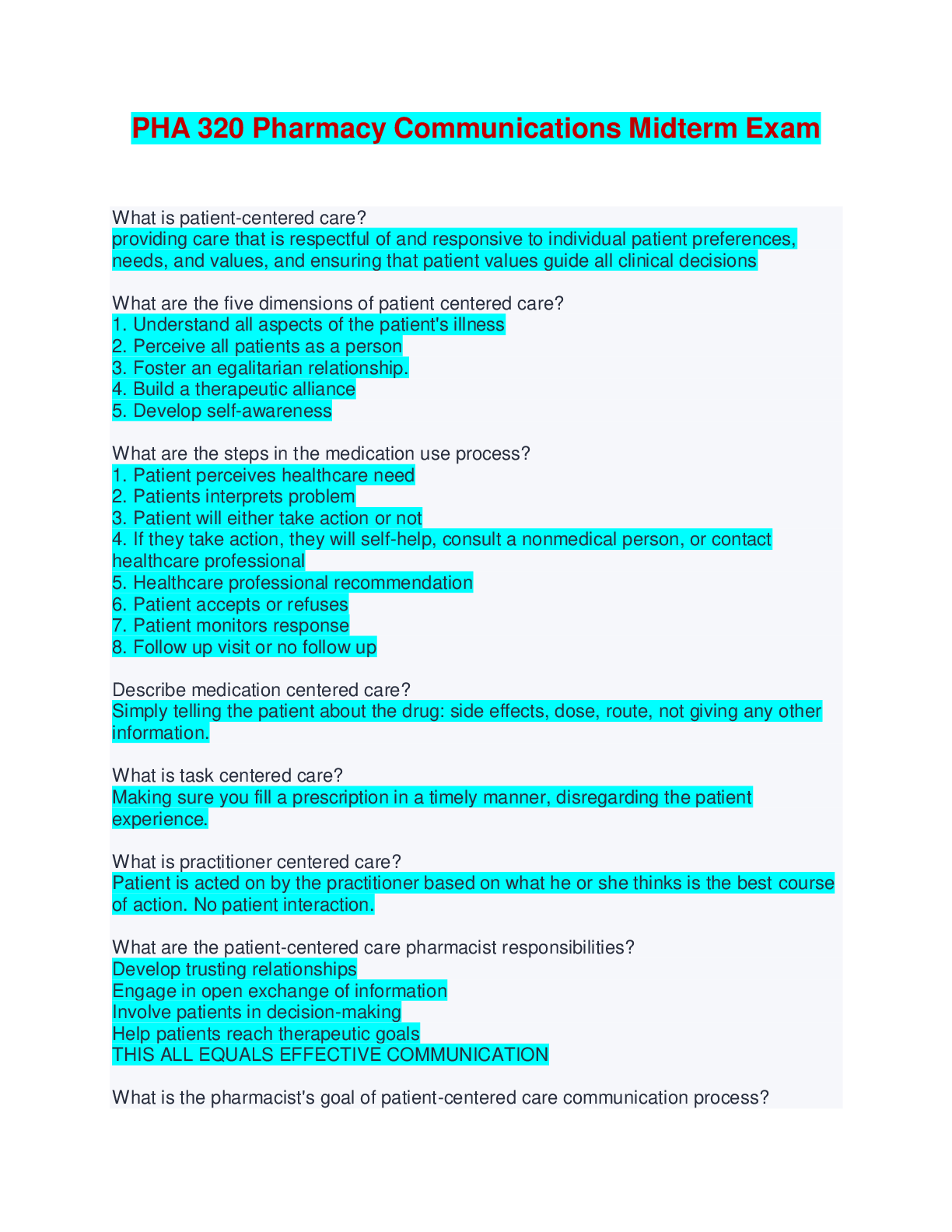 Medicine > EXAM > PHA 320 Pharmacy Communications Midterm Exam | Questions and Answers (All)
