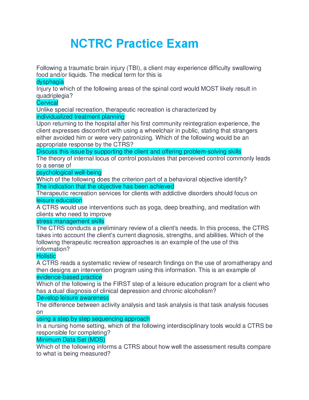 Medicine > EXAM > NCTRC Practice Exam questions and answers 100% complete solution 2025 (All)