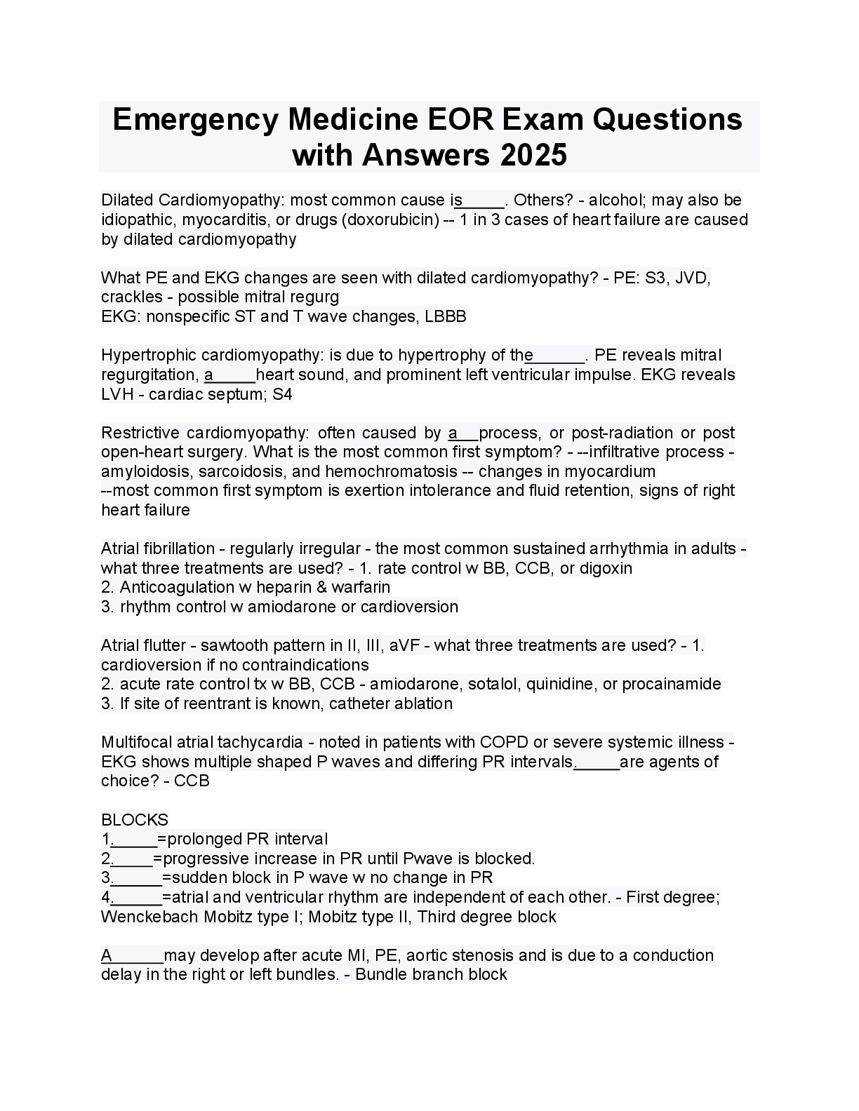 Medicine > EXAMs > Emergency Medicine EOR Exam Questions with Answers 2025 (All)