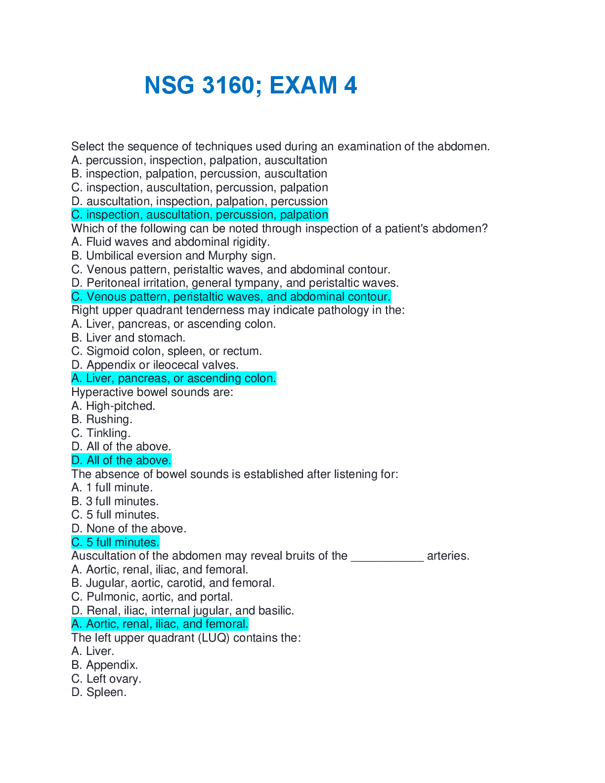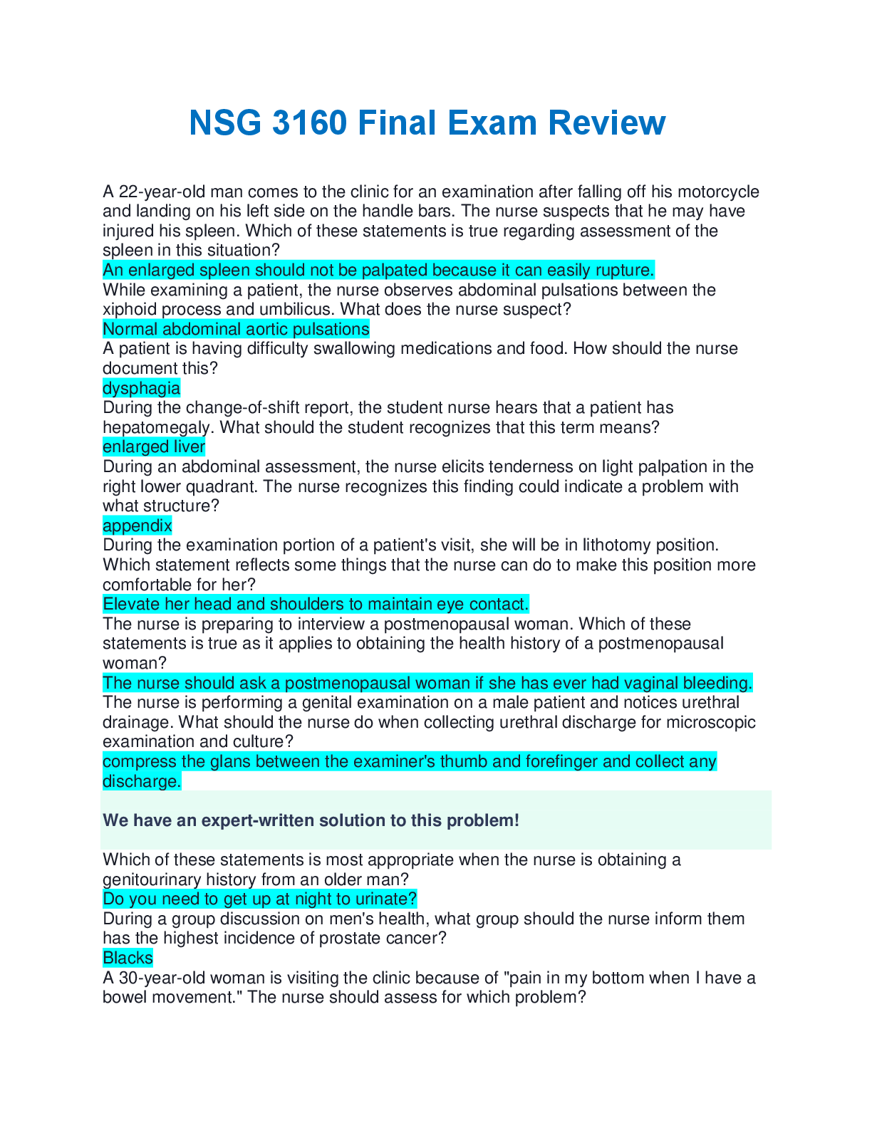 Medicine > EXAMs > NSG 3160 Final Exam Review questions with correct answers complete solution 2025/2026 (All)