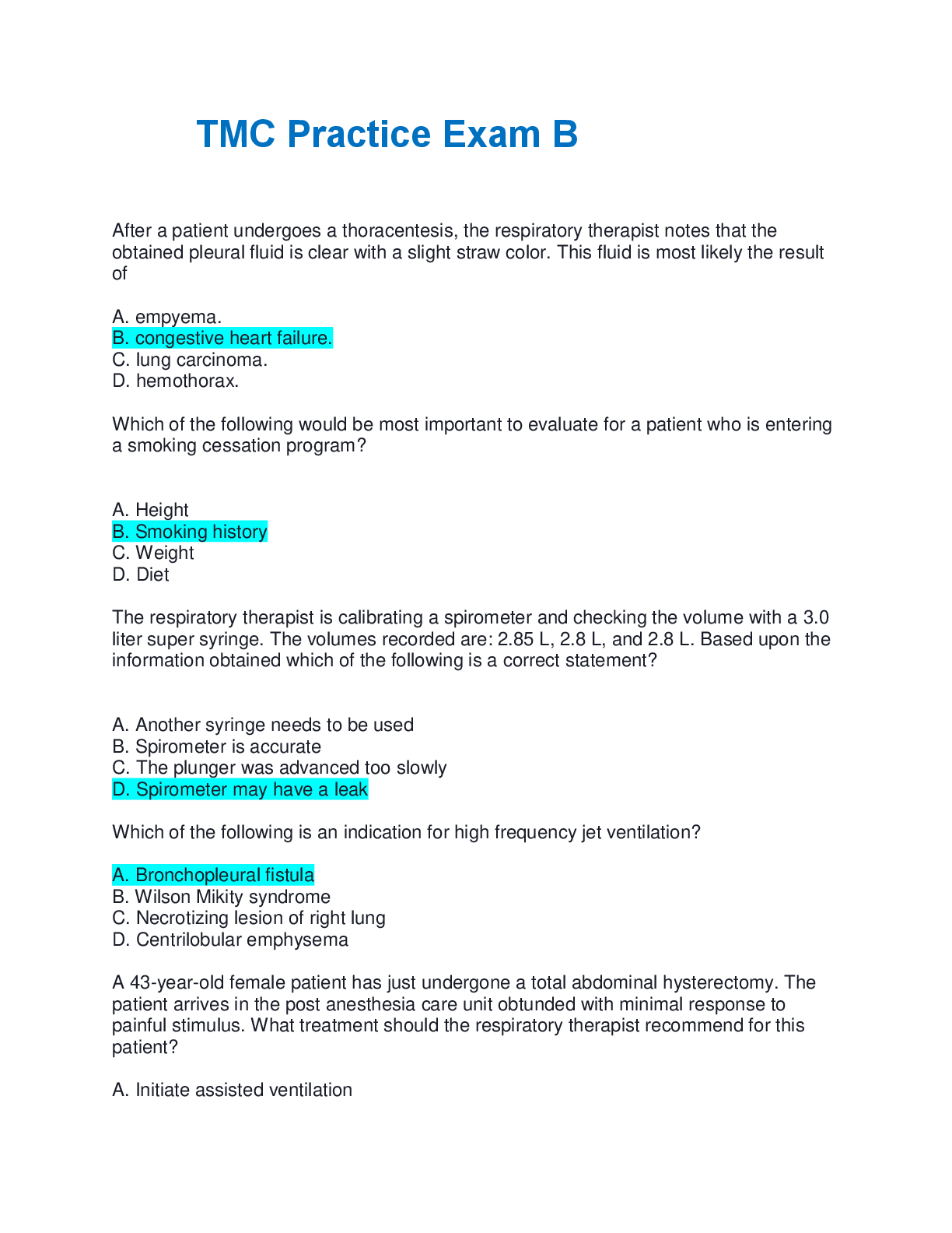 Medicine > EXAMs > TMC Practice Exam B questions with correct answers complete solution Rated A+ complete solution 2025/2026 (All)