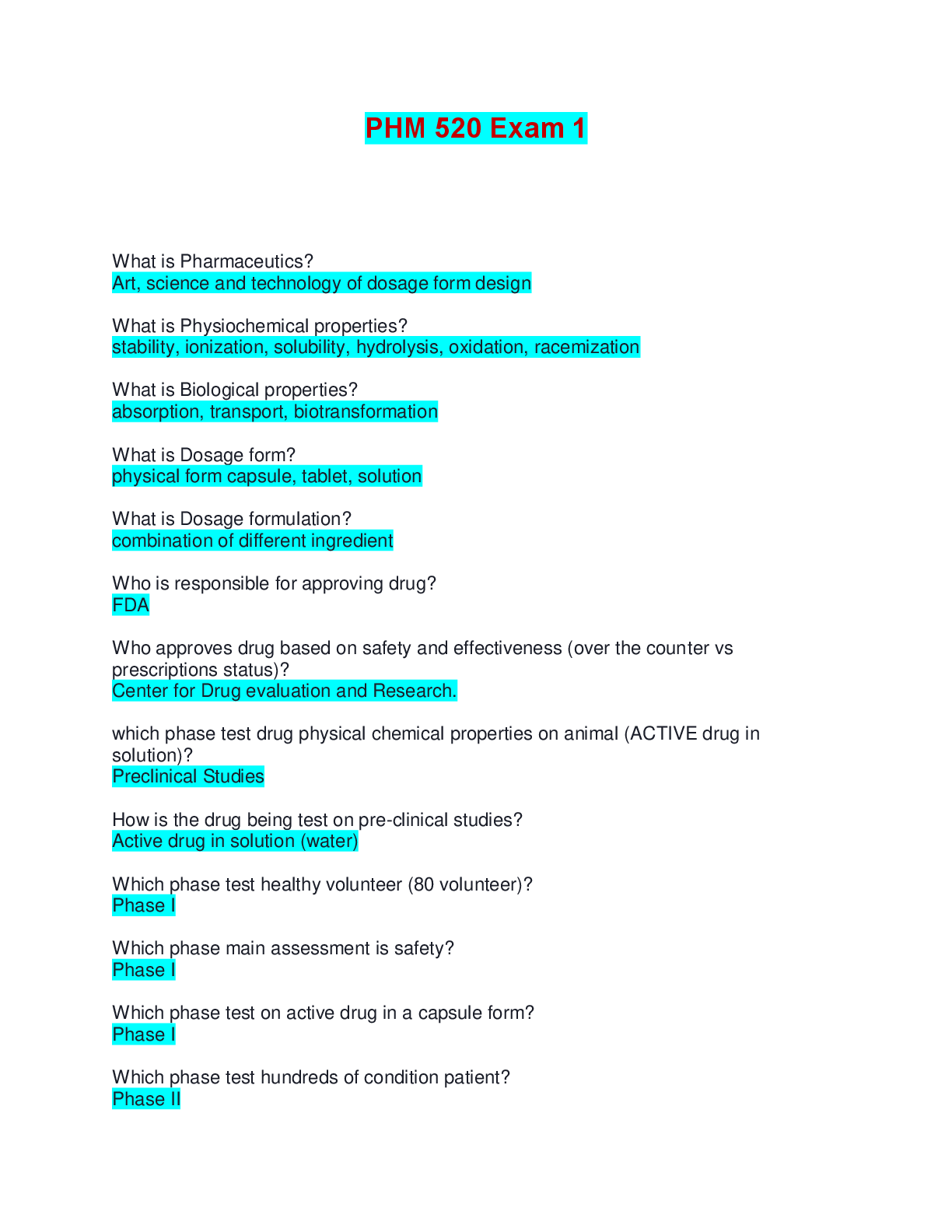Medicine > EXAMs > PHM 520 Exam 1 | Questions with 100% Correct Answers (All)