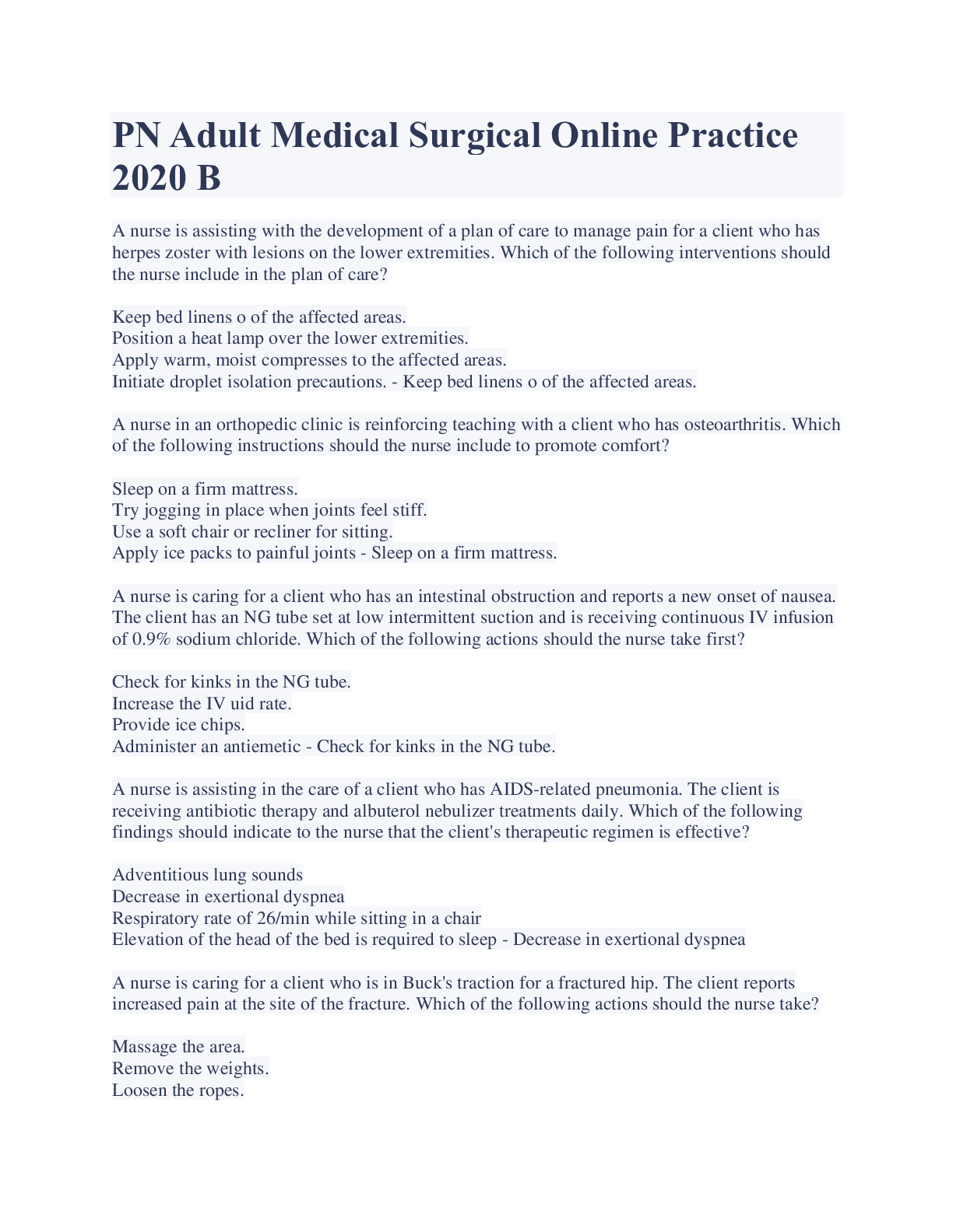 Medicine > EXAM > PN Adult Medical Surgical Online Practice 2020 B WIth Complete Solution (All)