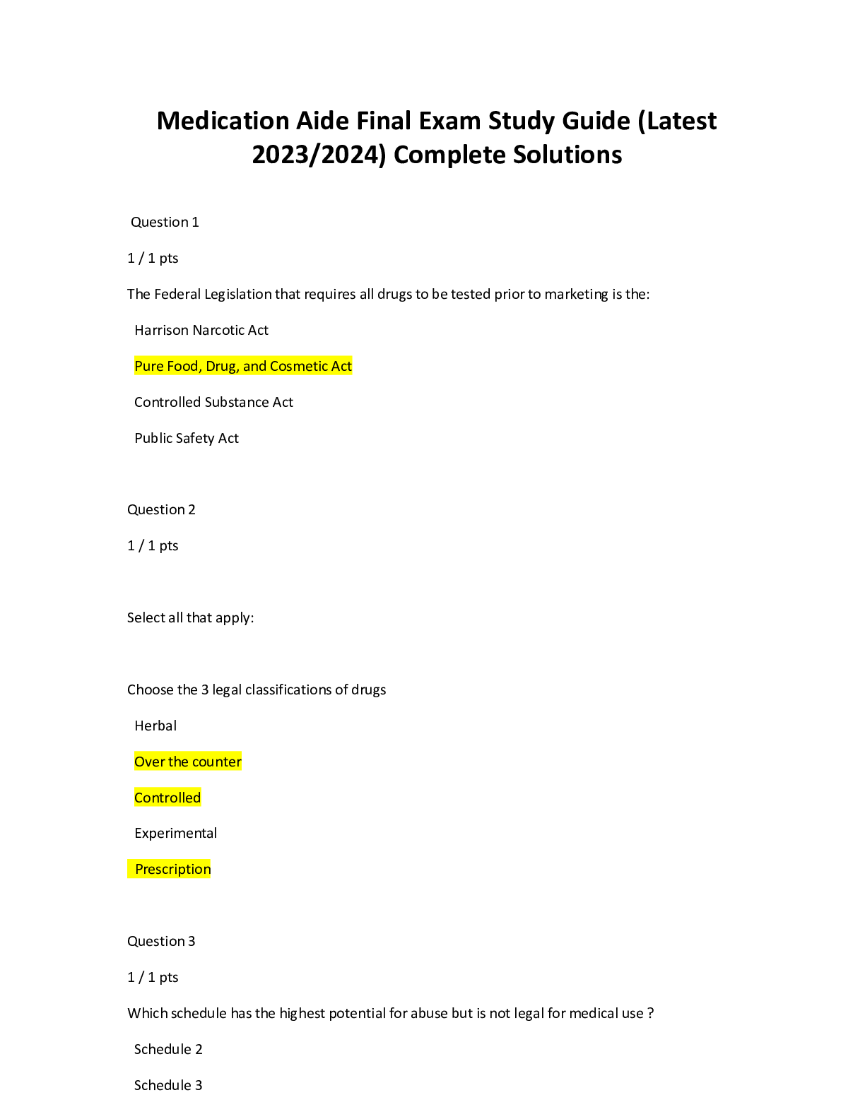 Medicine > EXAM > Medication Aide Final Exam Study Guide (Latest 2023/2024) Complete Solutions (All)
