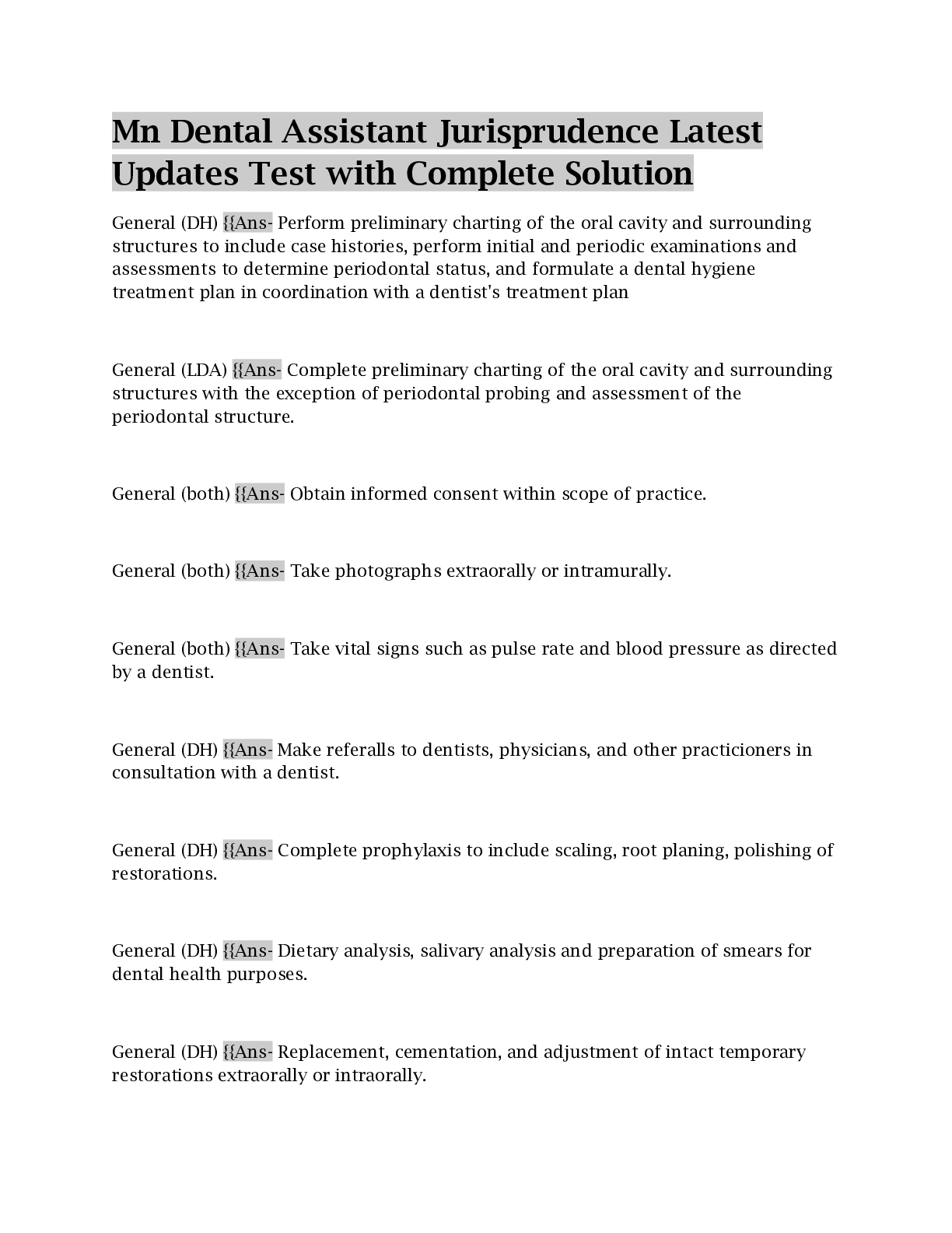 Medicine > EXAM > MN Dental Jurisprudence Exam New Update 2023 Actual Test (+250 Questions and Correct Answers) (All)