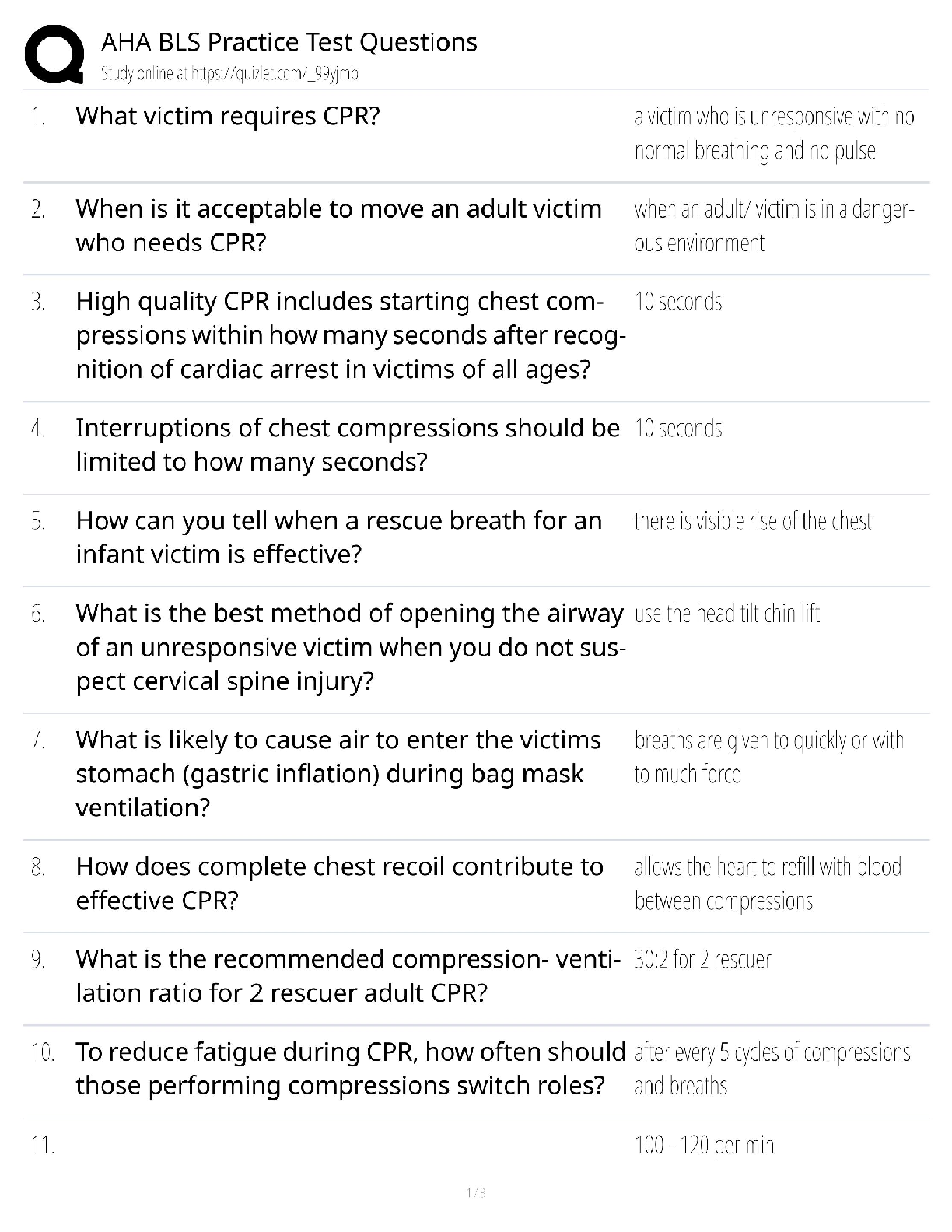 Cardiology > QUESTIONS & ANSWERS > AHA BLS Practice Test Questions / BLS Certification Test Bank / 2025 Update / Score 100% (All)