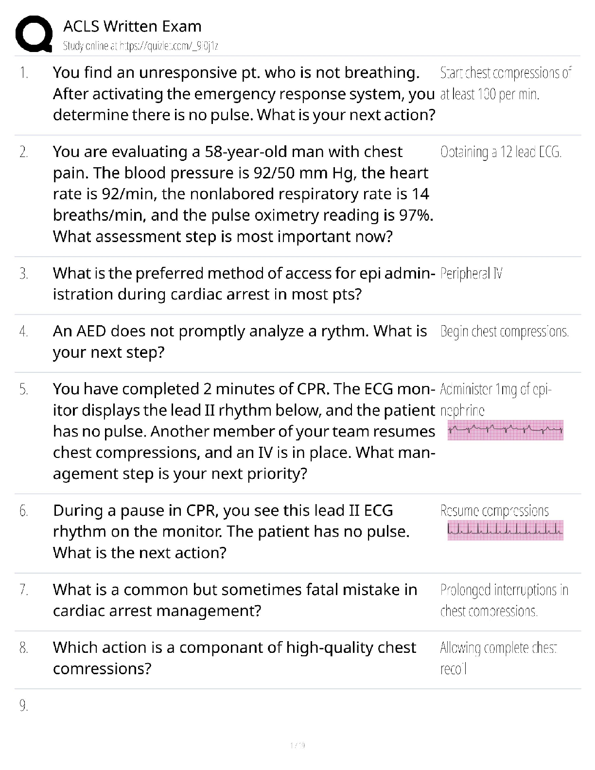 Cardiology > QUESTIONS & ANSWERS > ACLS Written Exam Test Bank / Advanced Cardiac Life Support / 2025 Update / Score 100% (All)
