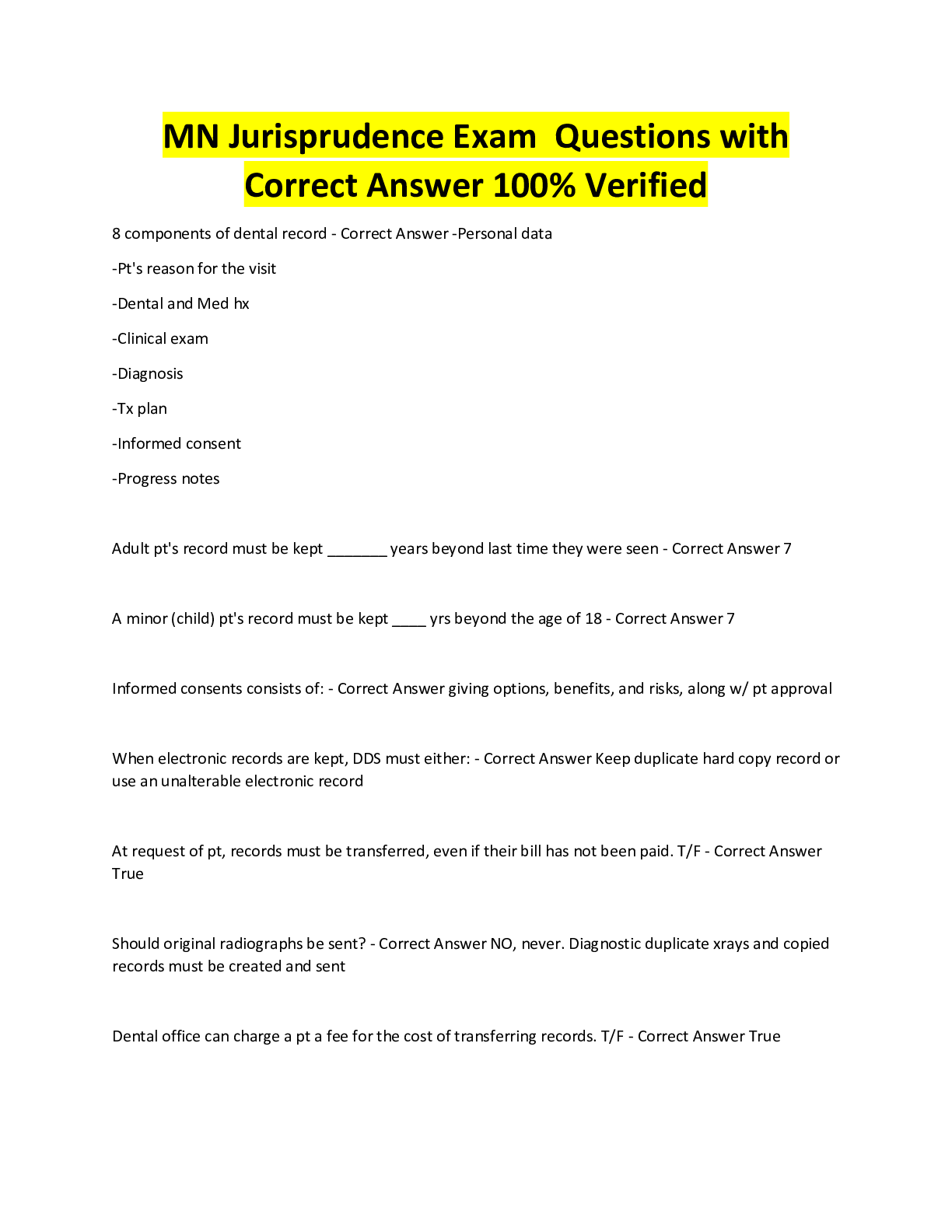 Dentistry > EXAM > MN Jurisprudence Exam Questions with Correct Answer 100% Verified (All)