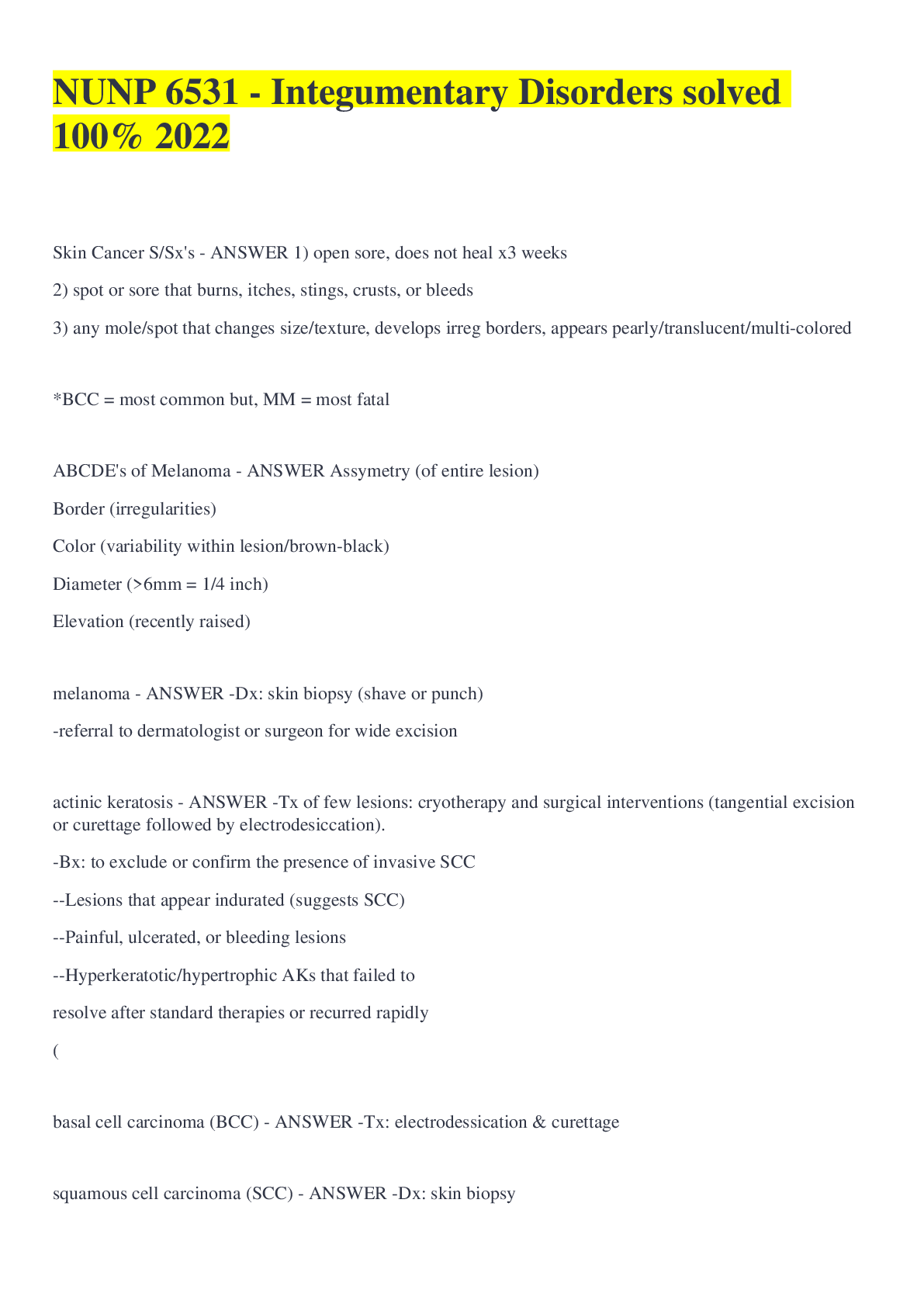 Dermatology > ESSAY > NUNP 6531 - Integumentary Disorders solved 100% 2022 (All)