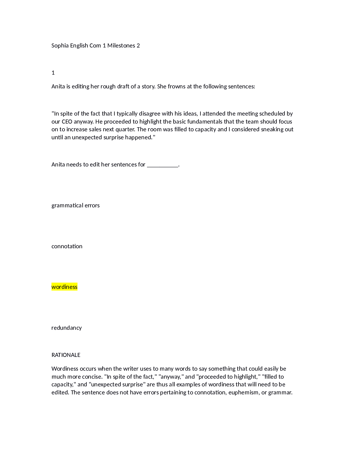 English > EXAM > Sophia English Com 1 Milestones 2. Kaplan University (All)