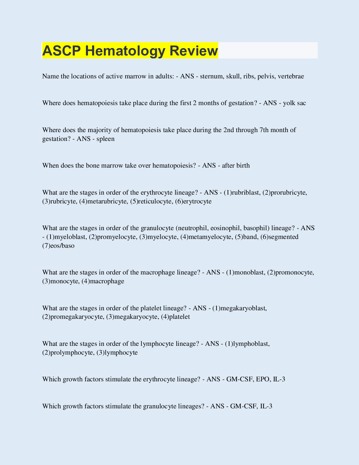 Hematology > QUESTIONS & ANSWERS > ASCP Hematology Review (All)