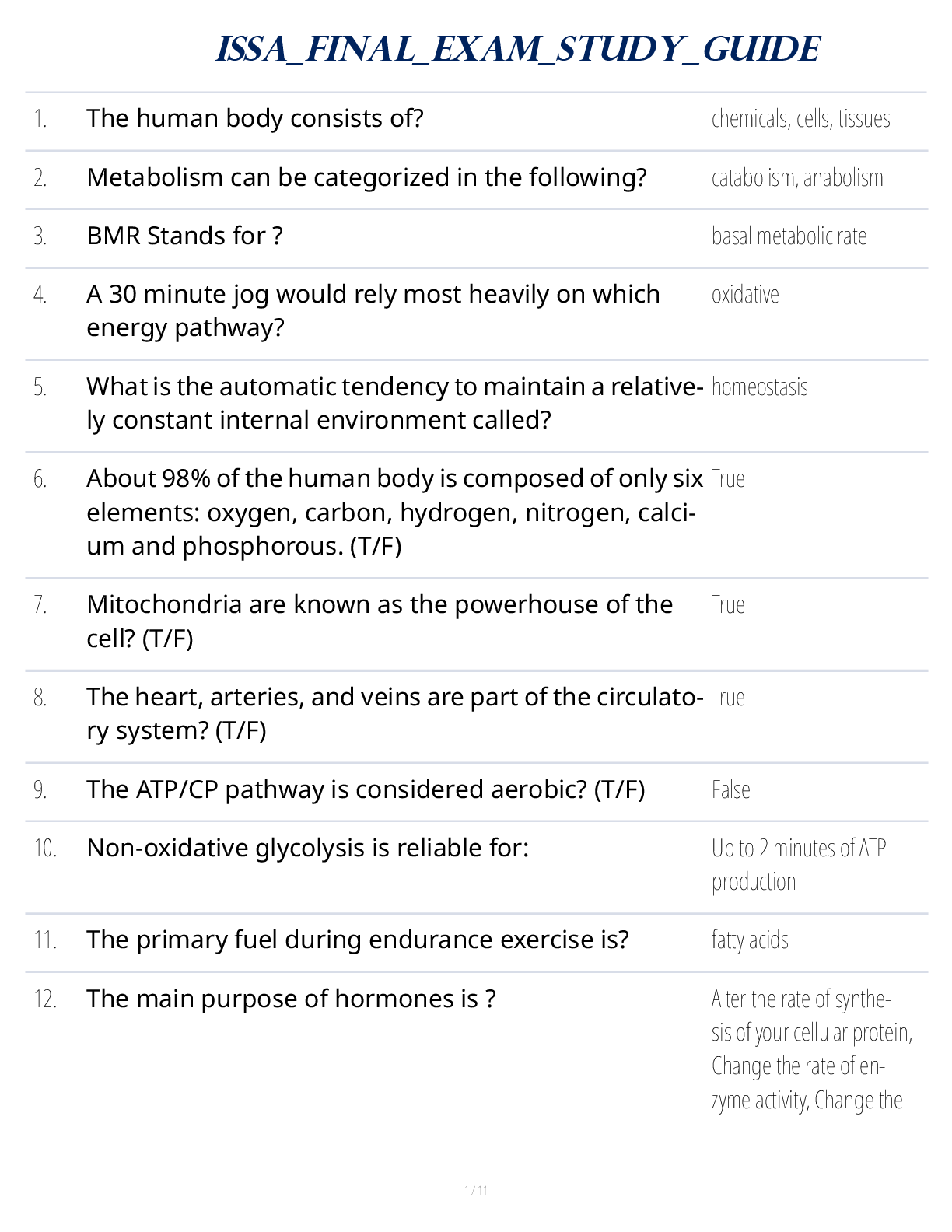 Nutrition > STUDY GUIDE > ISSA Final Exam Study Guide (All)