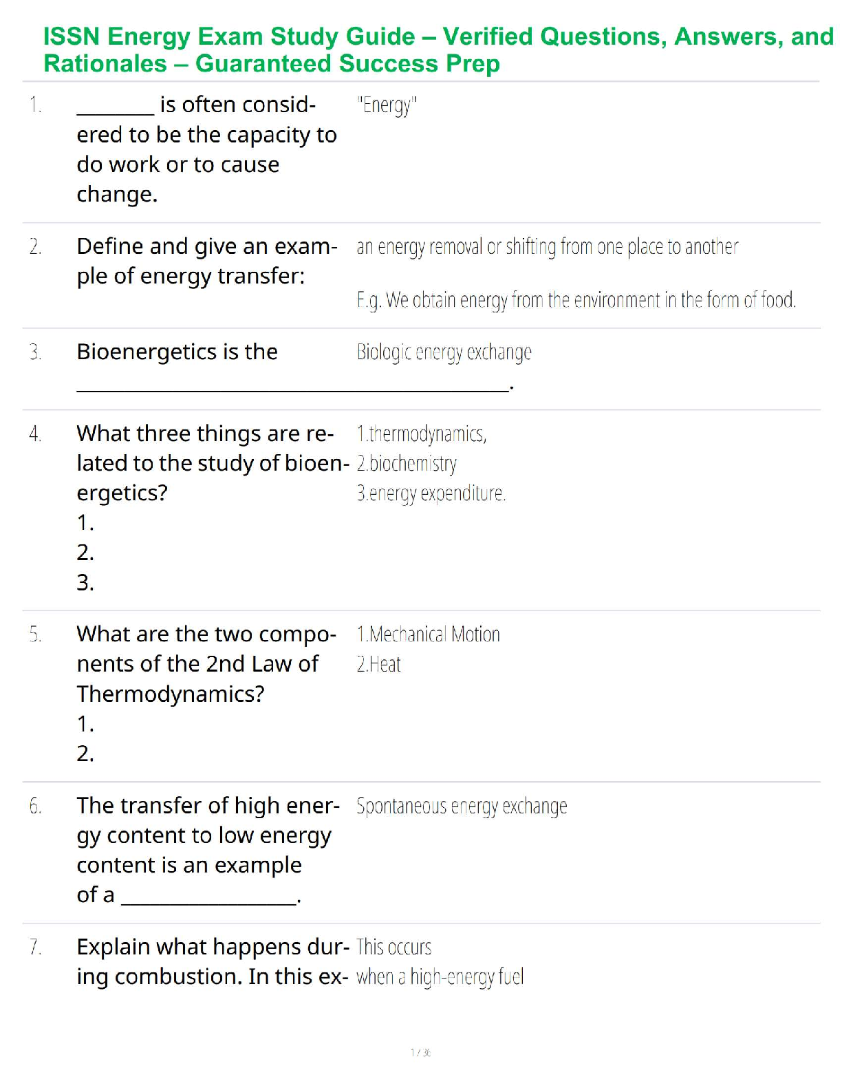 Nutrition > STUDY GUIDE > ISSN Energy Exam Study Guide – Verified Questions, Answers, and Rationales – Guaranteed Success Prep (All)
