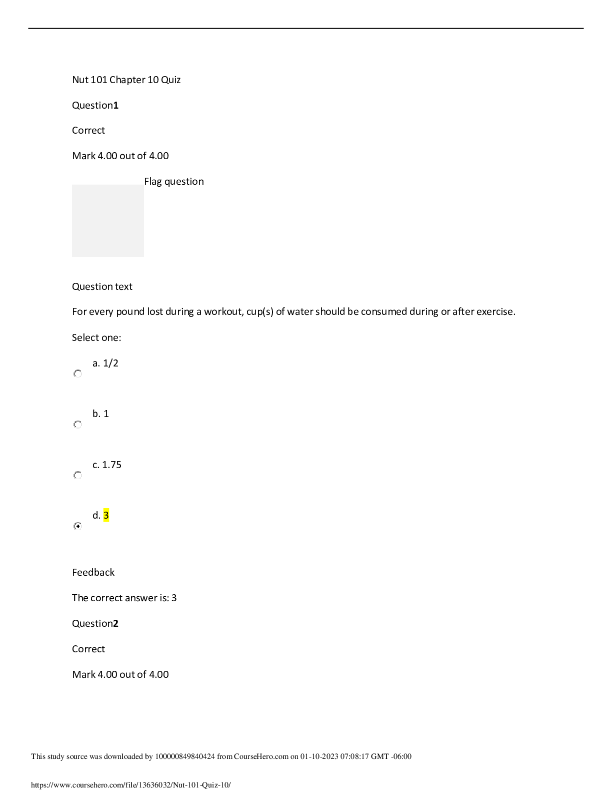 Nutrition > EXAM > NUTRI 101 Quiz 10 | VERIFIED | Straighterline (All)