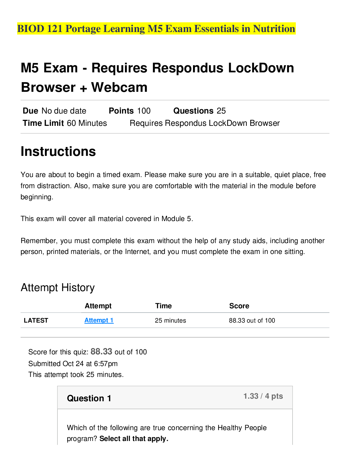 Nutrition > EXAM > BIOD 121 Portage Learning M5 Exam Essentials in Nutrition | 100% Verified (All)