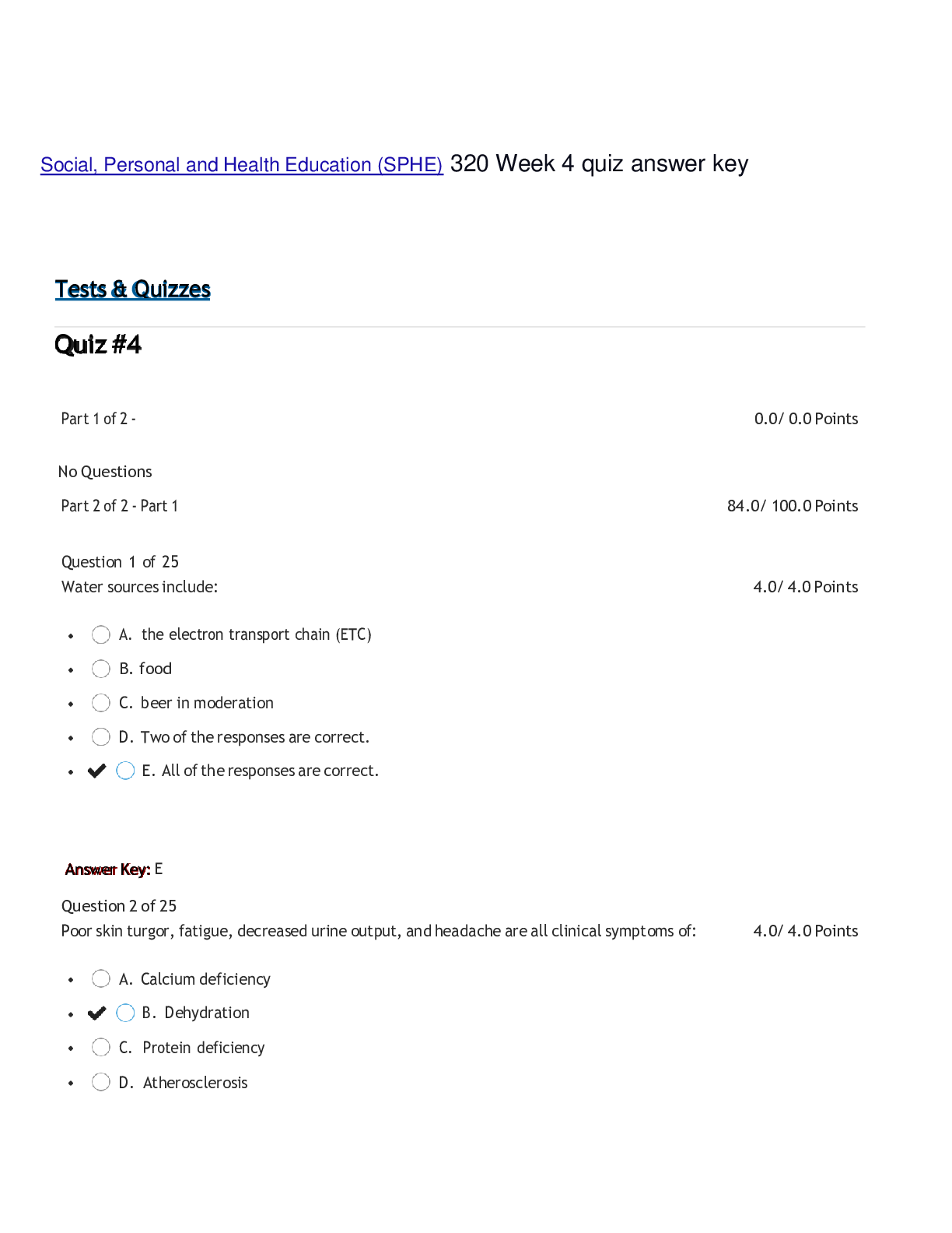 Nutrition > QUESTIONS & ANSWERS > Social, Personal and Health Education (SPHE) 320 Week 4 quiz answer key 2022/2023 (All)