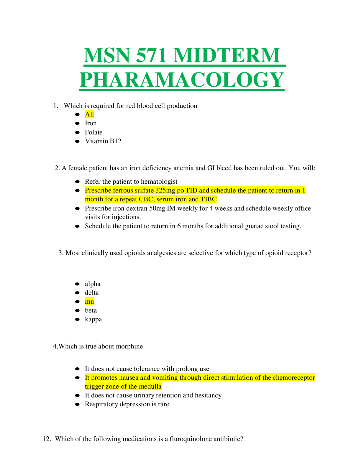 Nutrition > EXAM > MSN 571 1 MIDTERM PHARAMACOLOGY QUESTIONS AND ANSWERS. (All)