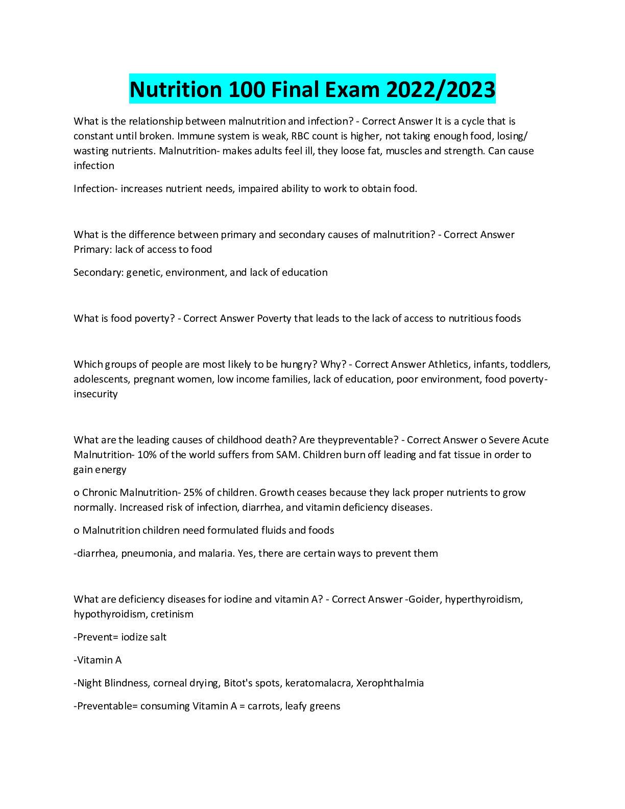 Nutrition > EXAM > Nutrition 100 Final Exam 2022/2023 (All)