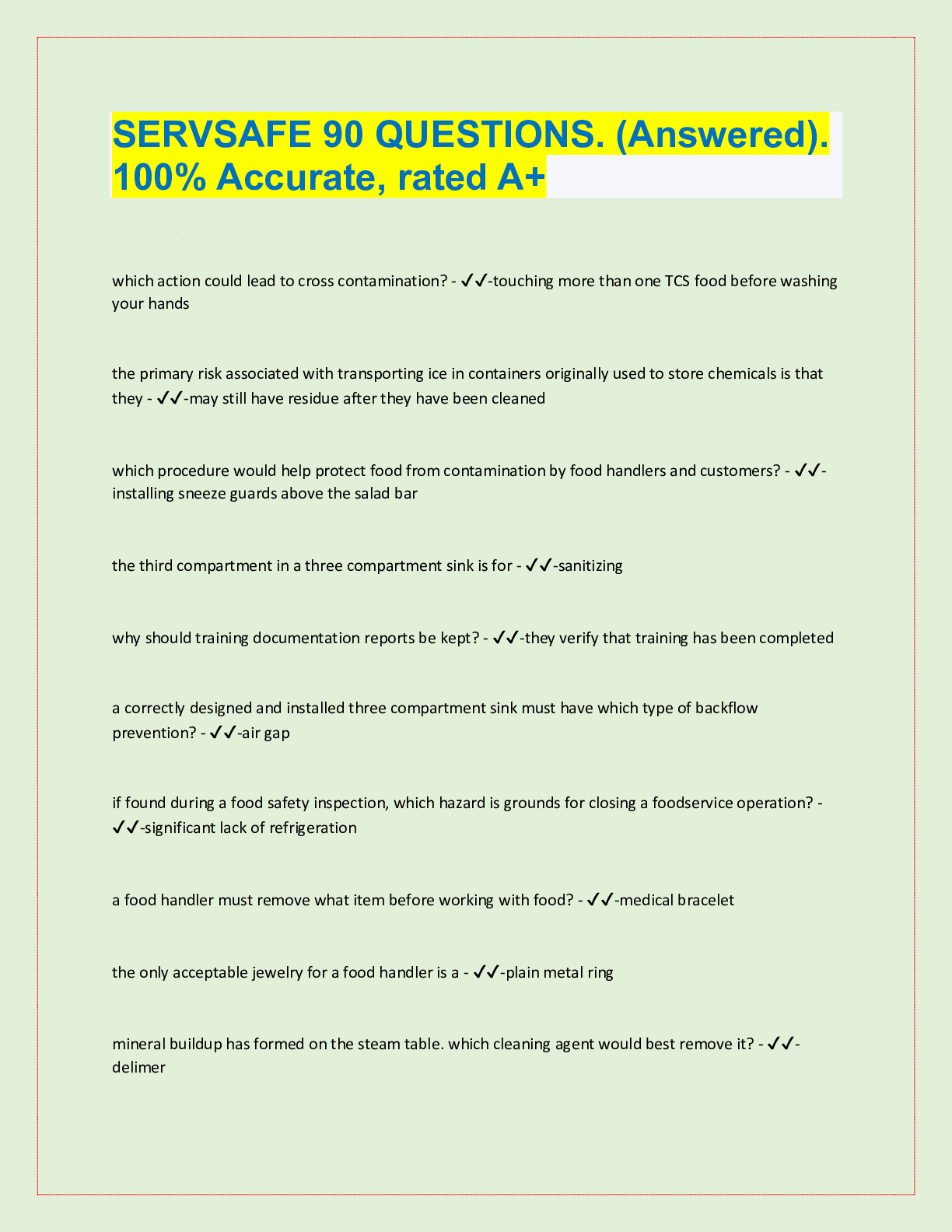 Nutrition > QUESTIONS & ANSWERS > SERVSAFE 90 QUESTIONS. (Answered). 100% Accurate, rated A+ (All)