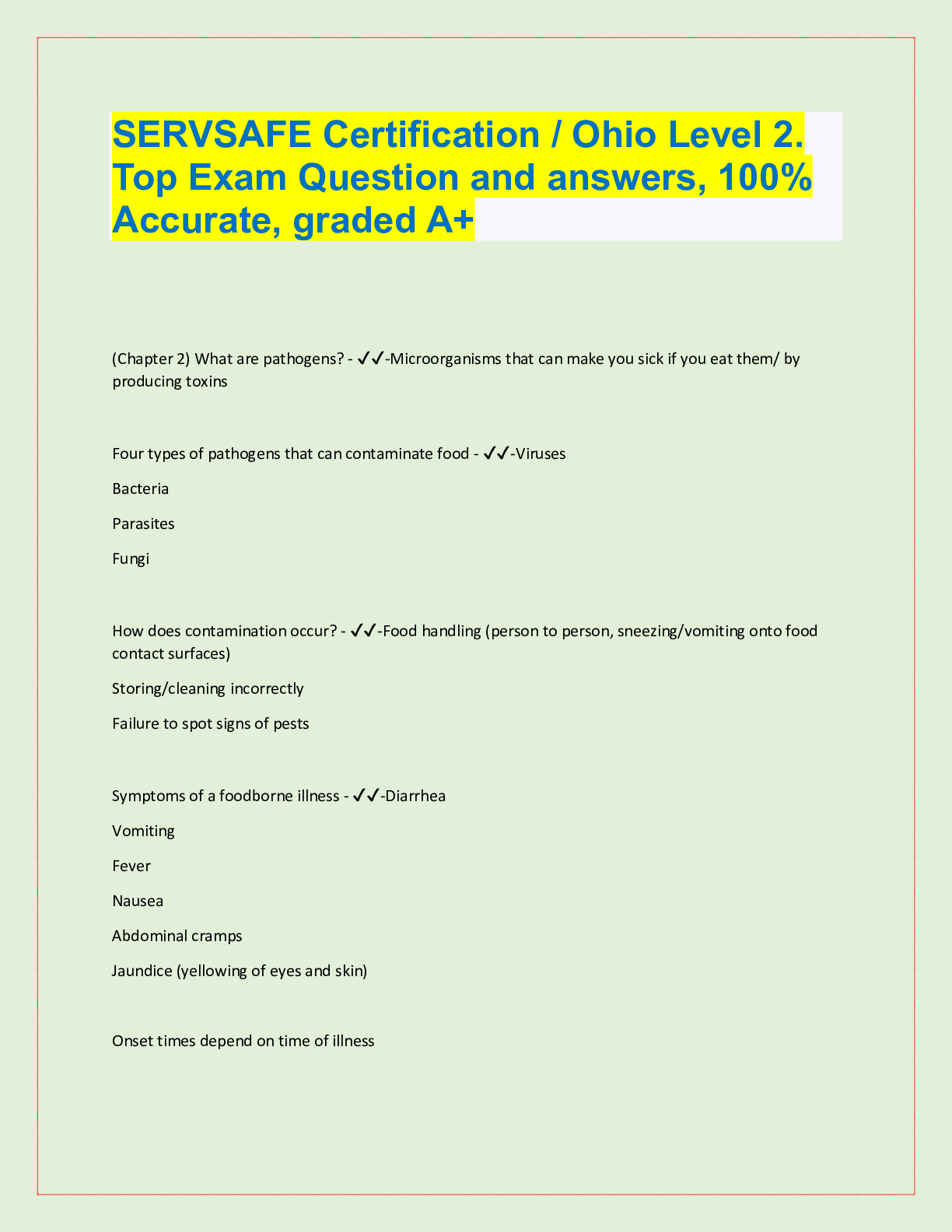 Nutrition > QUESTIONS & ANSWERS > SERVSAFE Certification / Ohio Level 2. Top Exam Question and answers, 100% Accurate, graded A+ (All)