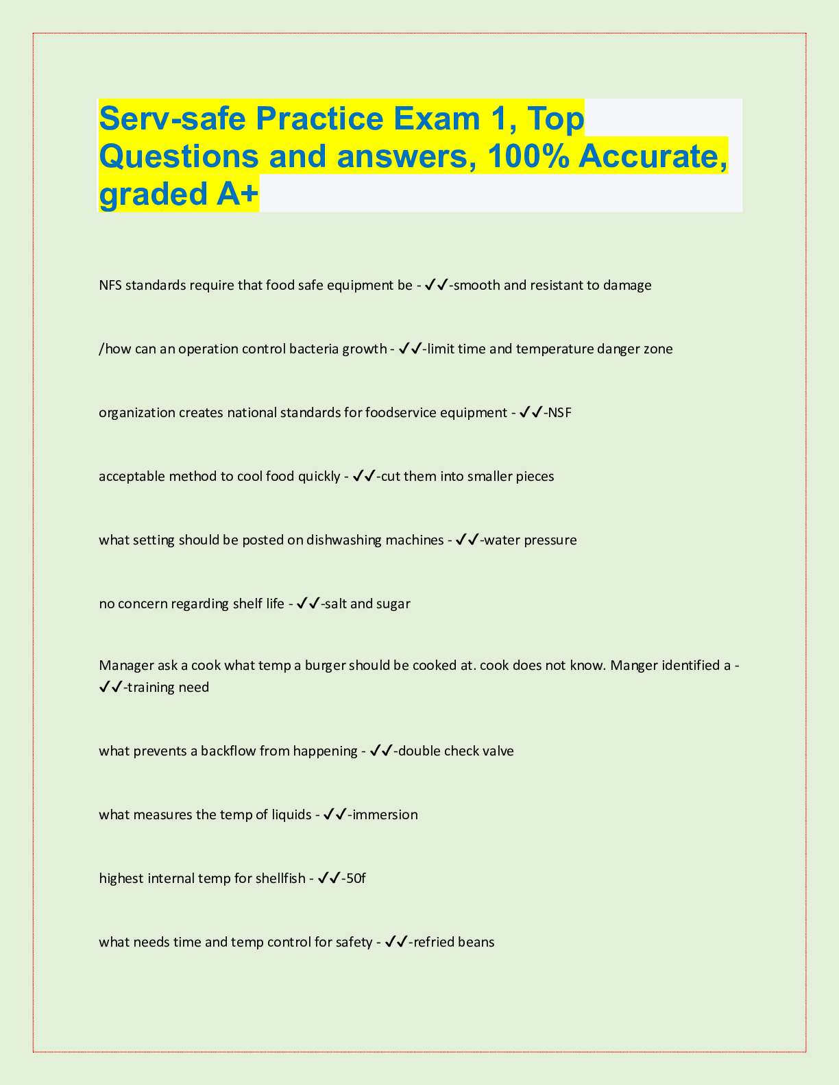 Nutrition > QUESTIONS & ANSWERS > Serv safe final exam, Top Exam Questions with accurate answers, graded A+ (All)