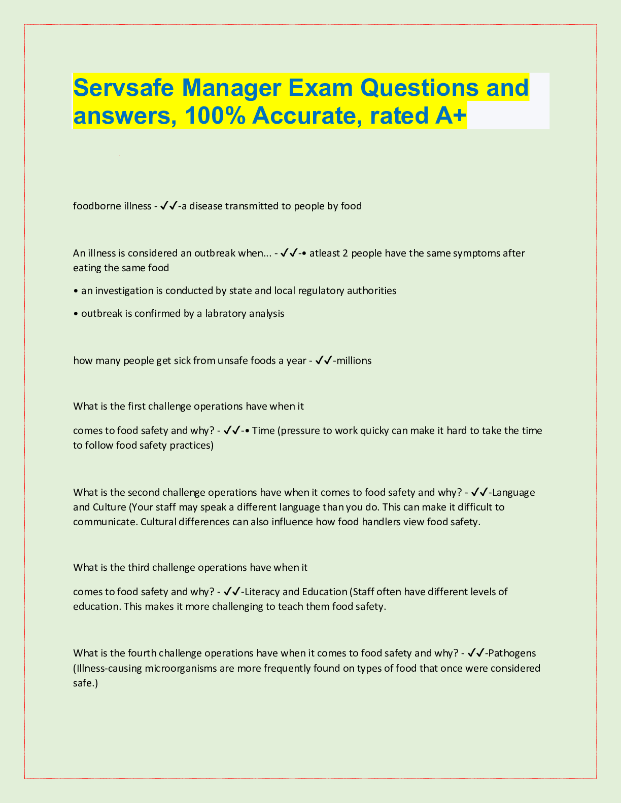 Nutrition > QUESTIONS & ANSWERS > ServSafe Manager Exam Questions with accurate answers, 100% Accurate. Graded A+ (All)
