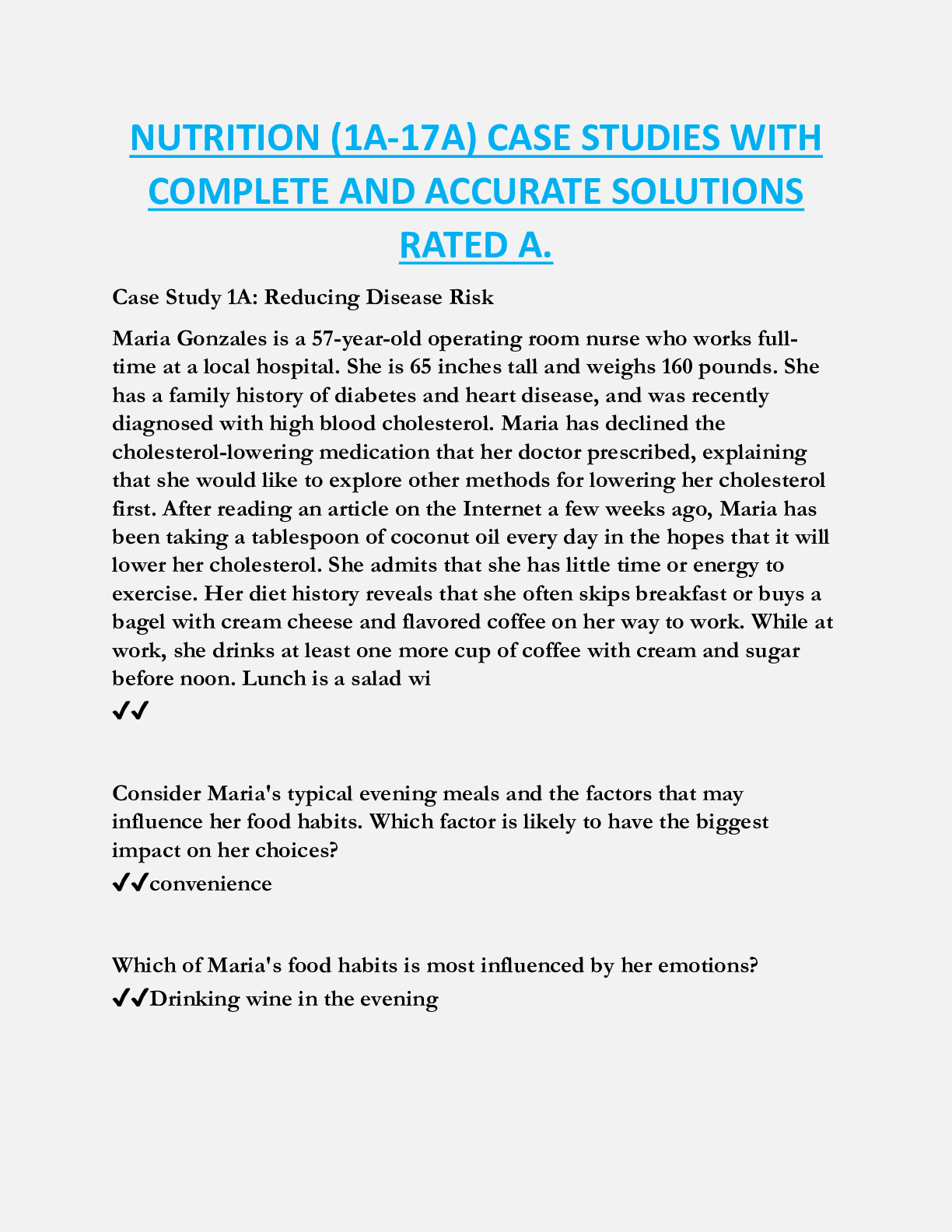 Nutrition > EXAM > NUTRITION (1A-17A) CASE STUDIES WITH COMPLETE AND ACCURATE SOLUTIONS RATED A. (All)