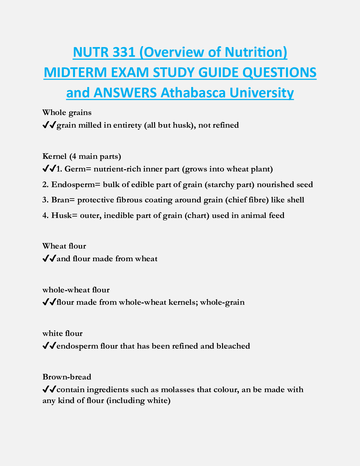 Nutrition > EXAM > NUTR 331 (Overview of Nutrition) MIDTERM EXAM STUDY GUIDE QUESTIONS and ANSWERS Athabasca University (All)