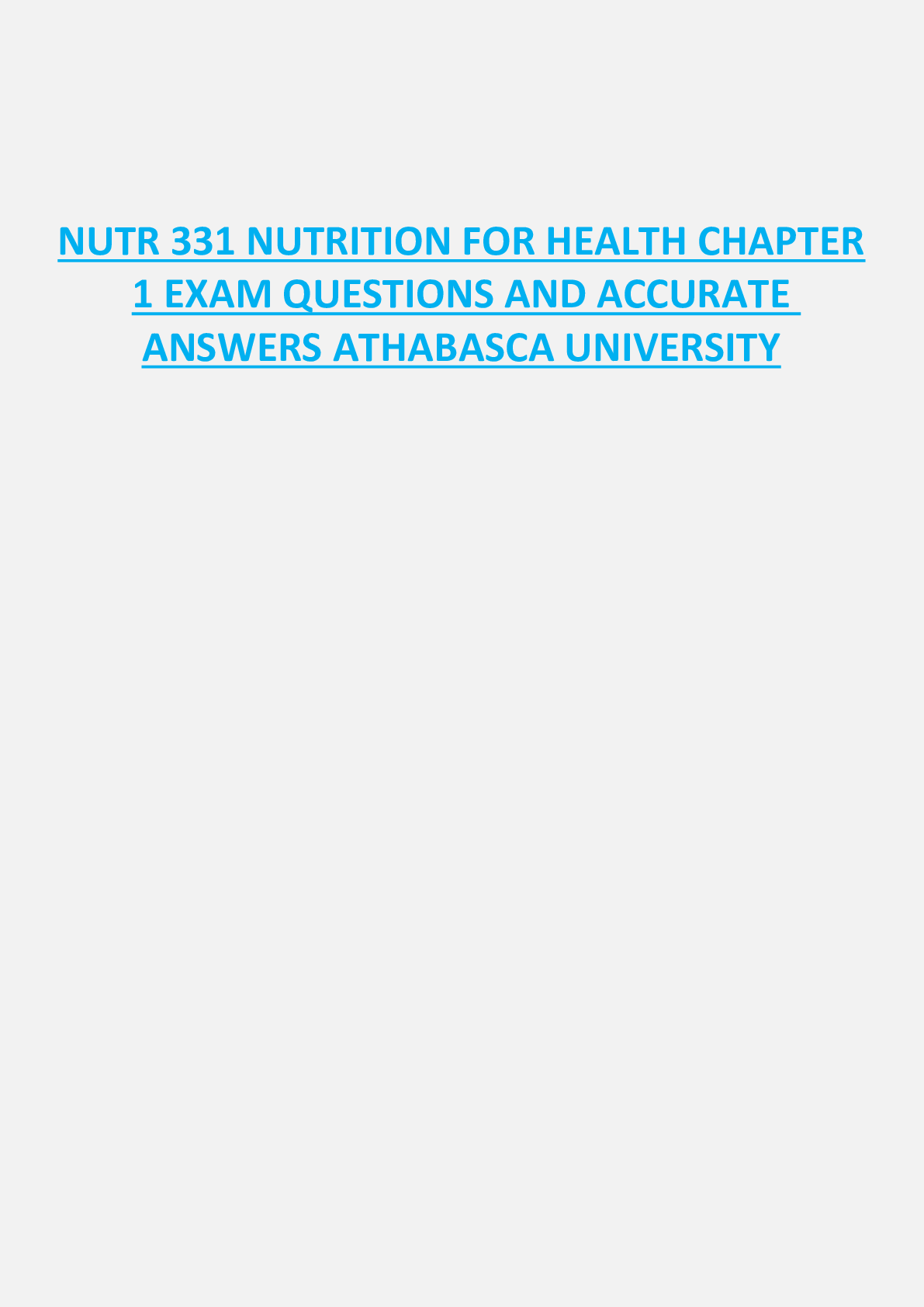 Nutrition > EXAM > NUTR 331 NUTRITION FOR HEALTH CHAPTER 1 EXAM QUESTIONS AND ACCURATE ANSWERS ATHABASCA UNIVERSITY (All)