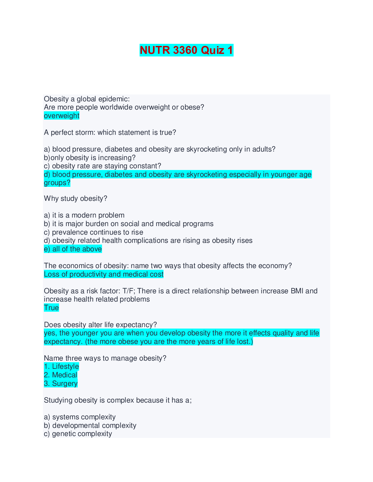 Nutrition > EXAM > NUTR 3360 Quiz 1 | Questions and Answers (All)