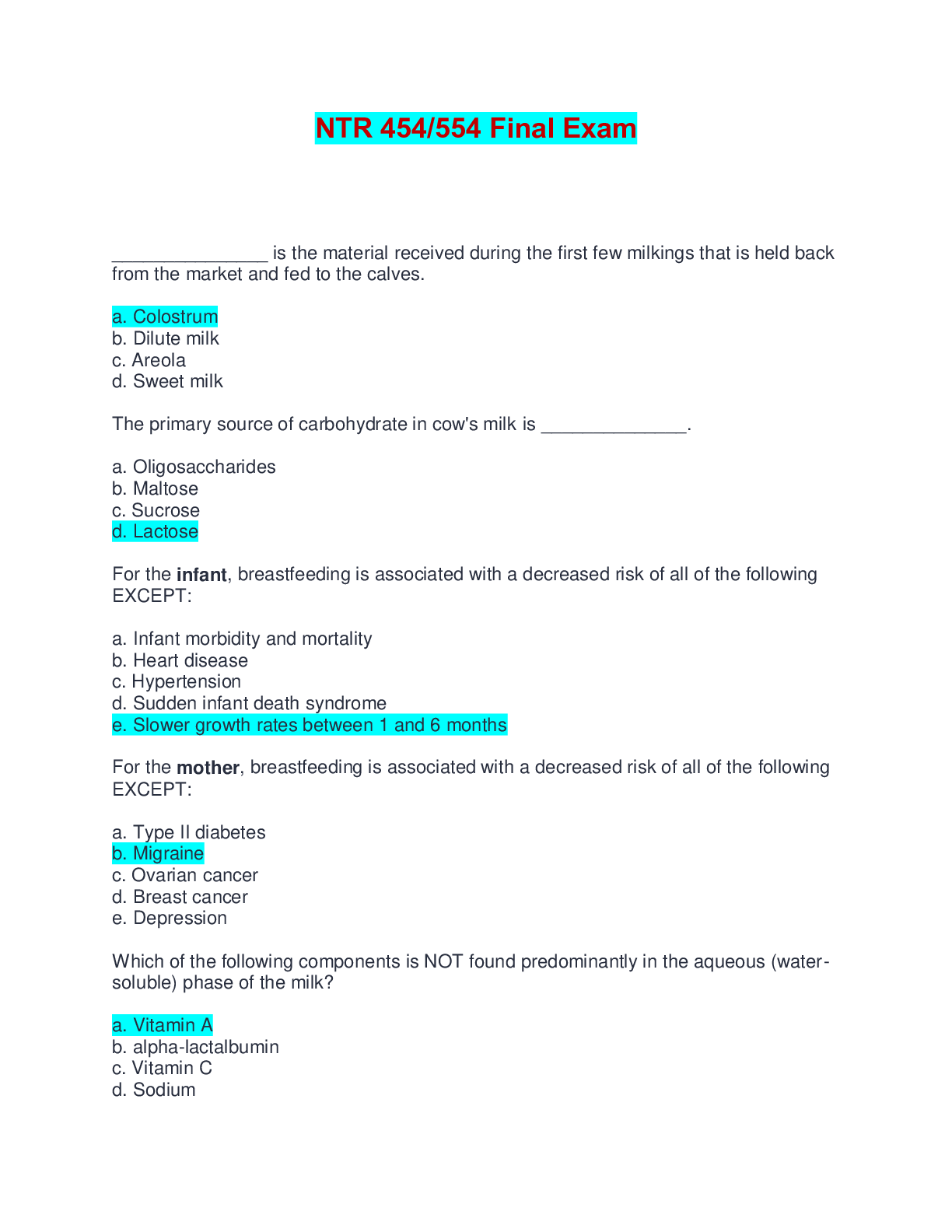 Nutrition > EXAM > NTR 454/554 Final Exam | Questions and Answers (Complete Solutions) (All)