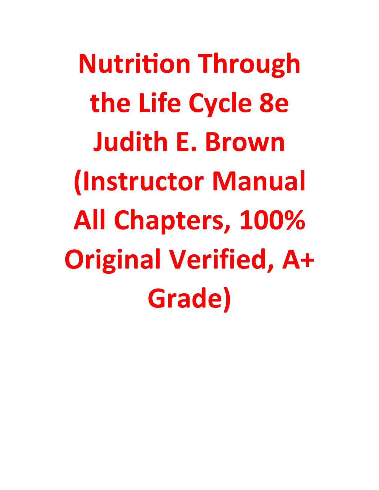 Nutrition > TEST BANKS > The Test Bank for Nutrition Through the Life Cycle, 8th Edition by Judith E. Brown (All)