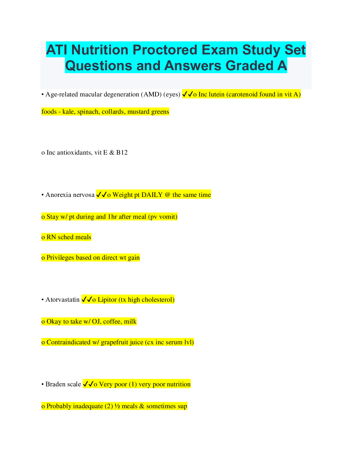 Nutrition > QUESTIONS & ANSWERS > ATI Nutrition Proctored Exam Study Set Questions and Answers Graded A (All)