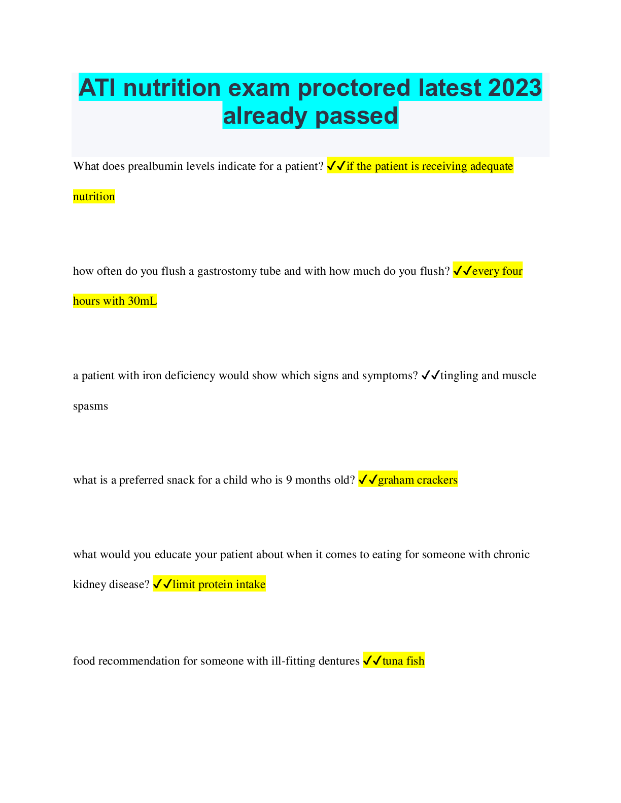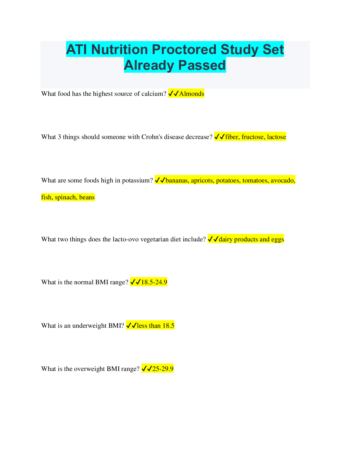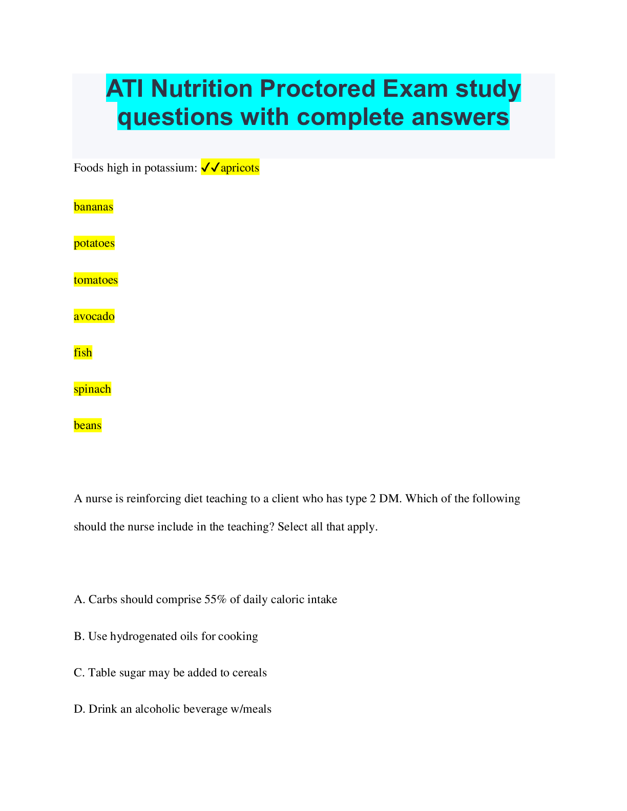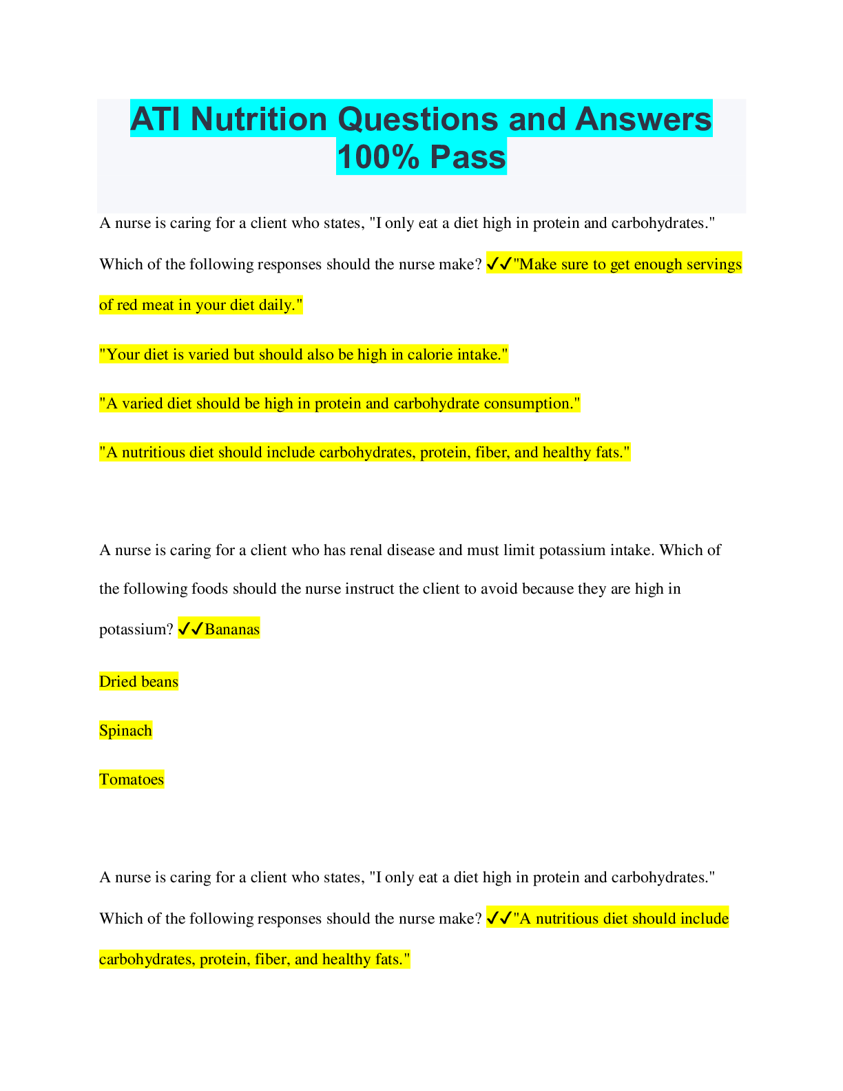 Nutrition > QUESTIONS & ANSWERS > ATI nutrition exam questions and answers rated A (All)