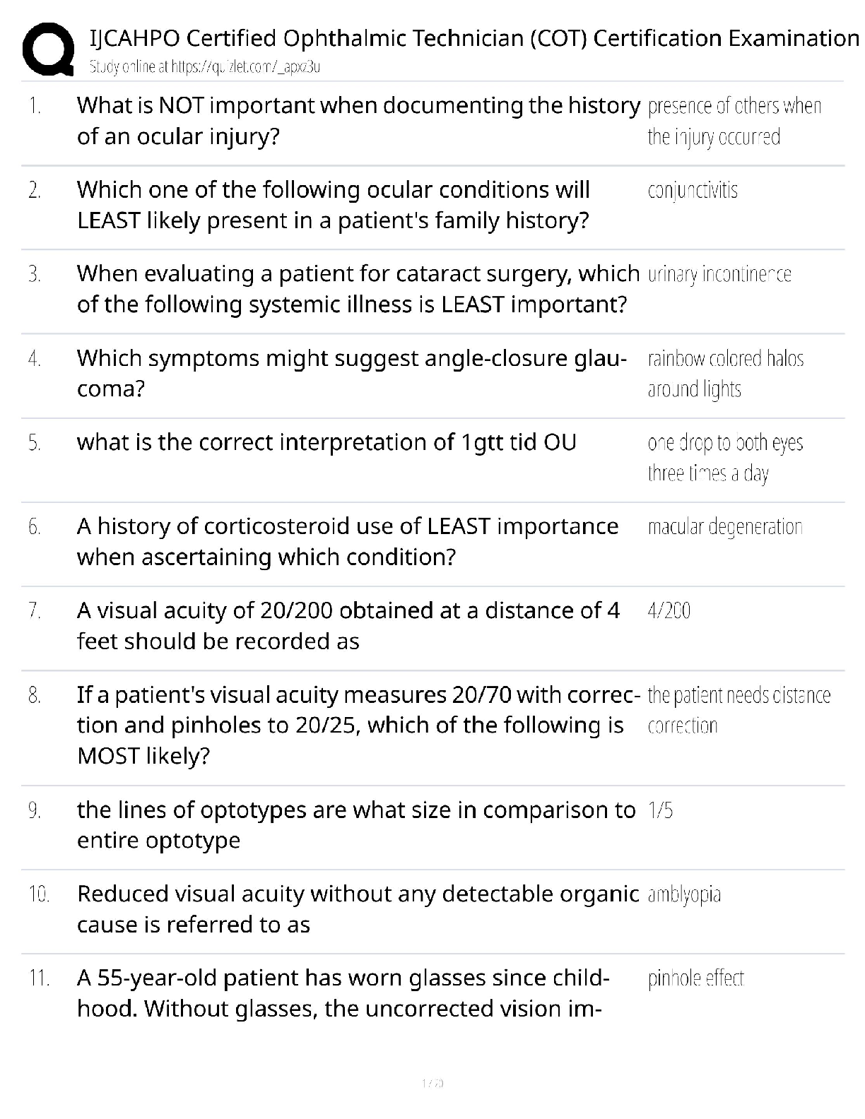 Ophthalmology > QUESTIONS & ANSWERS > IJCAHPO COT Certification Exam Test Bank / Ophthalmic Technician / 2025 Update / Score 100% (All)