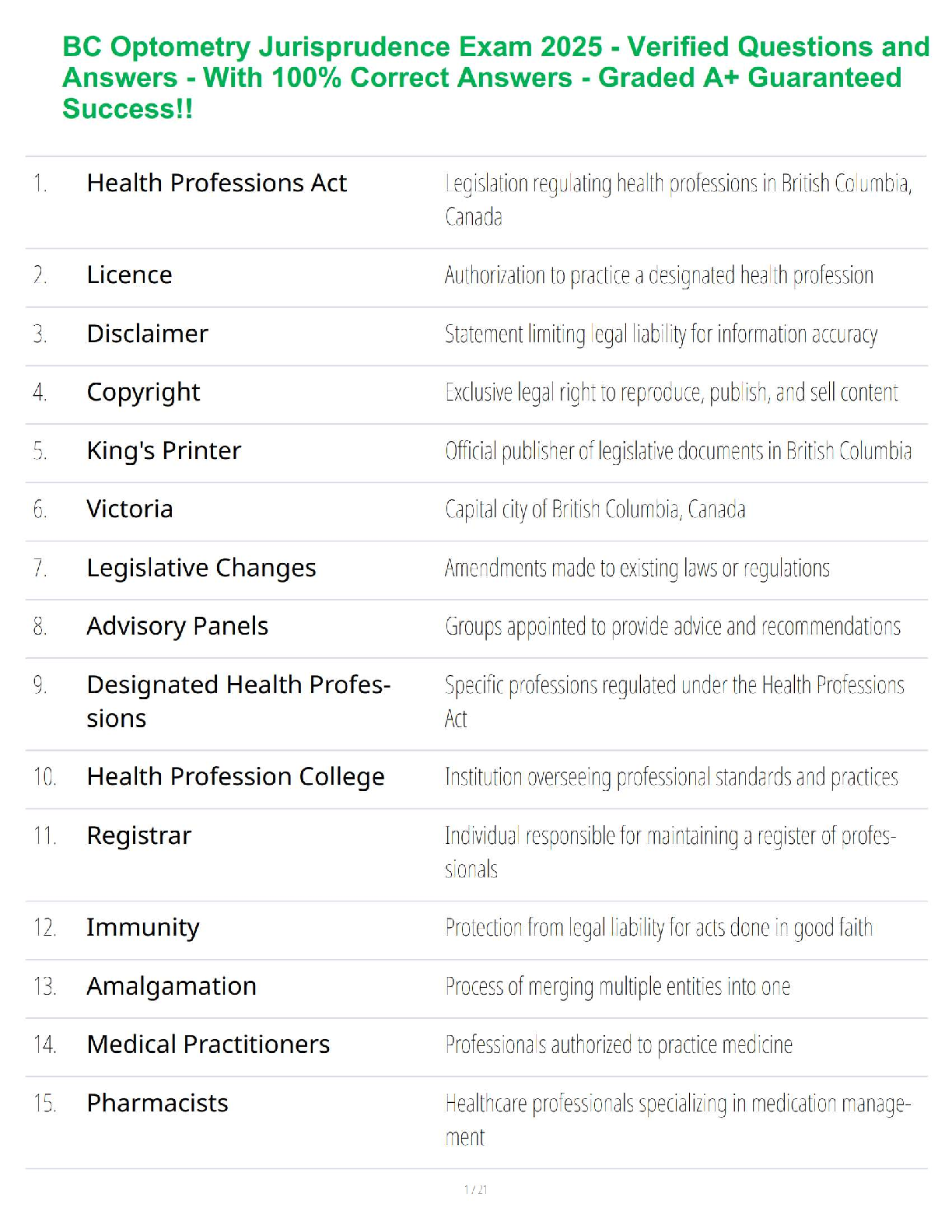 Optometry > STUDY GUIDE > BC Optometry Jurisprudence Exam 2025 - Verified Questions and Answers - With 100% Correct Answers - Graded A+ Guaranteed Success!! (All)