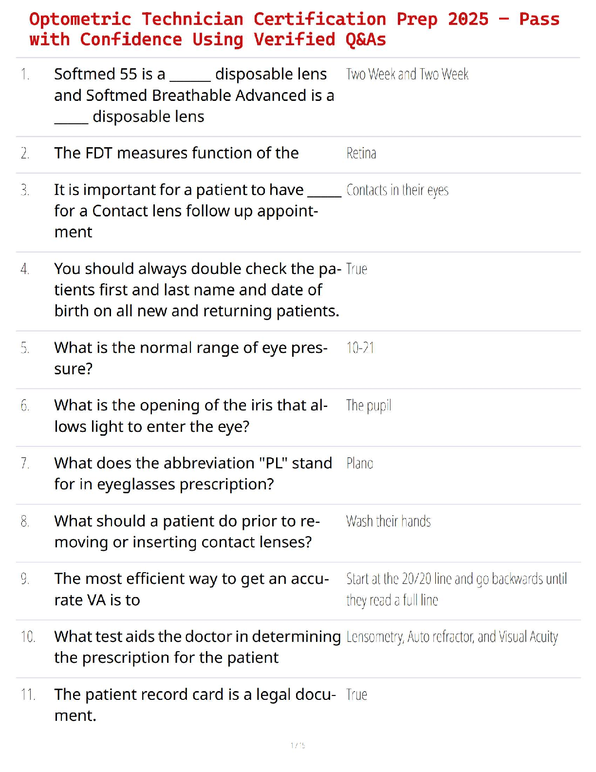 Optometry > QUESTIONS & ANSWERS > Optometric Technician Certification – Study Guide with Verified Questions and Answers (All)