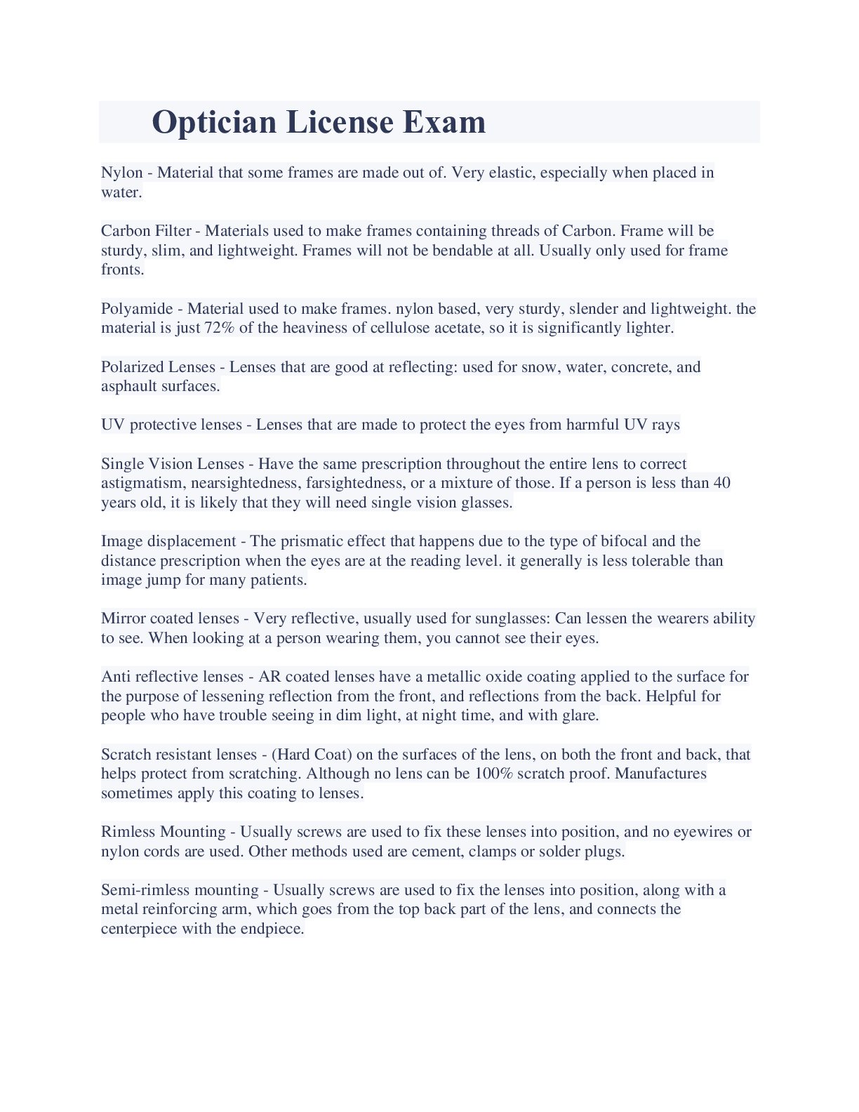 Optometry > EXAM > Optician License Exam Latest Updates (All)