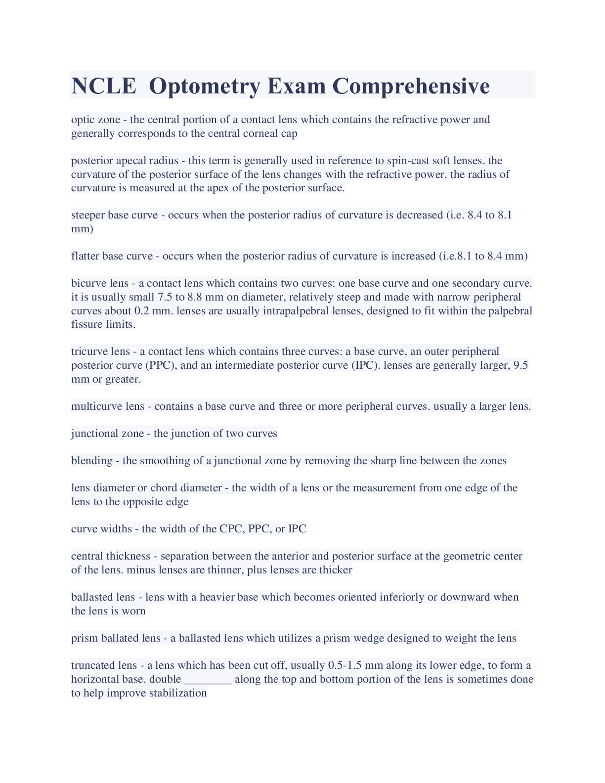 Optometry > EXAM > NCLE Optometry Exam Comprehensive 2023 (All)