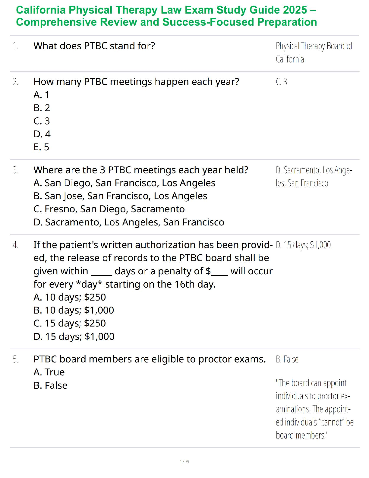 Physical Therapy > STUDY GUIDE > California Physical Therapy Law Exam Study Guide 2025 – Comprehensive Review and Success-Focused Preparation (All)