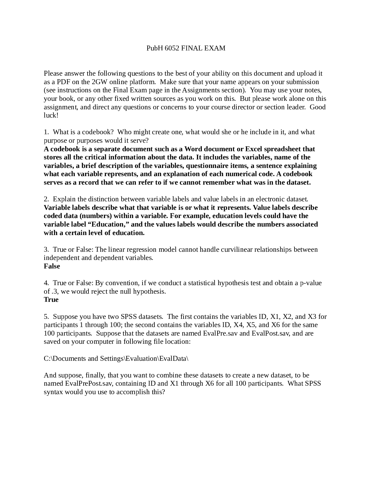 Public Health > EXAM > PubH 6052 Final Exam .LATEST 2022-2023 (All)