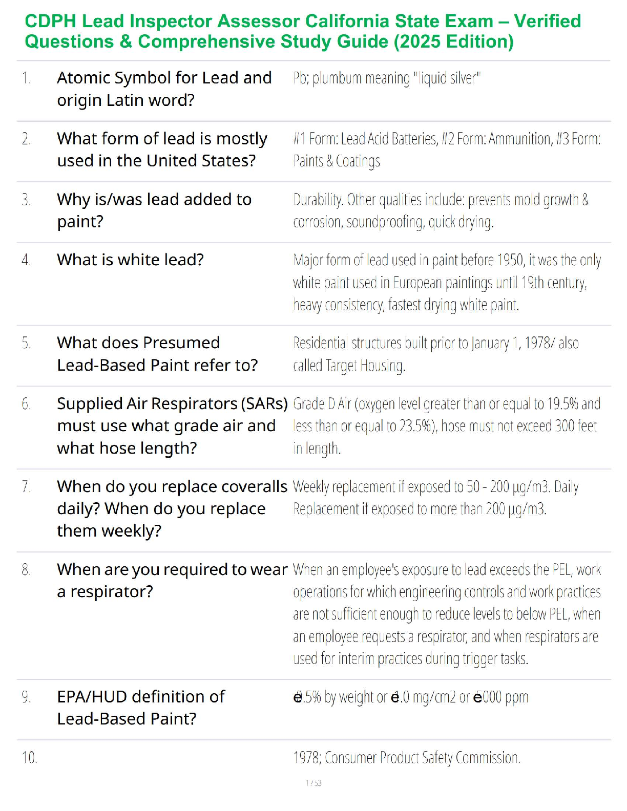 Public Health > QUESTIONS & ANSWERS > CDPH Lead Inspector/Assessor California State Exam – Verified Questions & Comprehensive Study Guide (2025 Edition) (All)